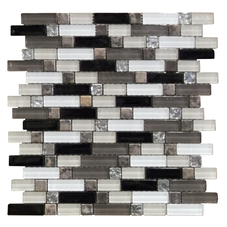 PLIEGO DE MOSAICO VIDRIO/PIEDRA 30X30CM BLANCO/NEGRO
