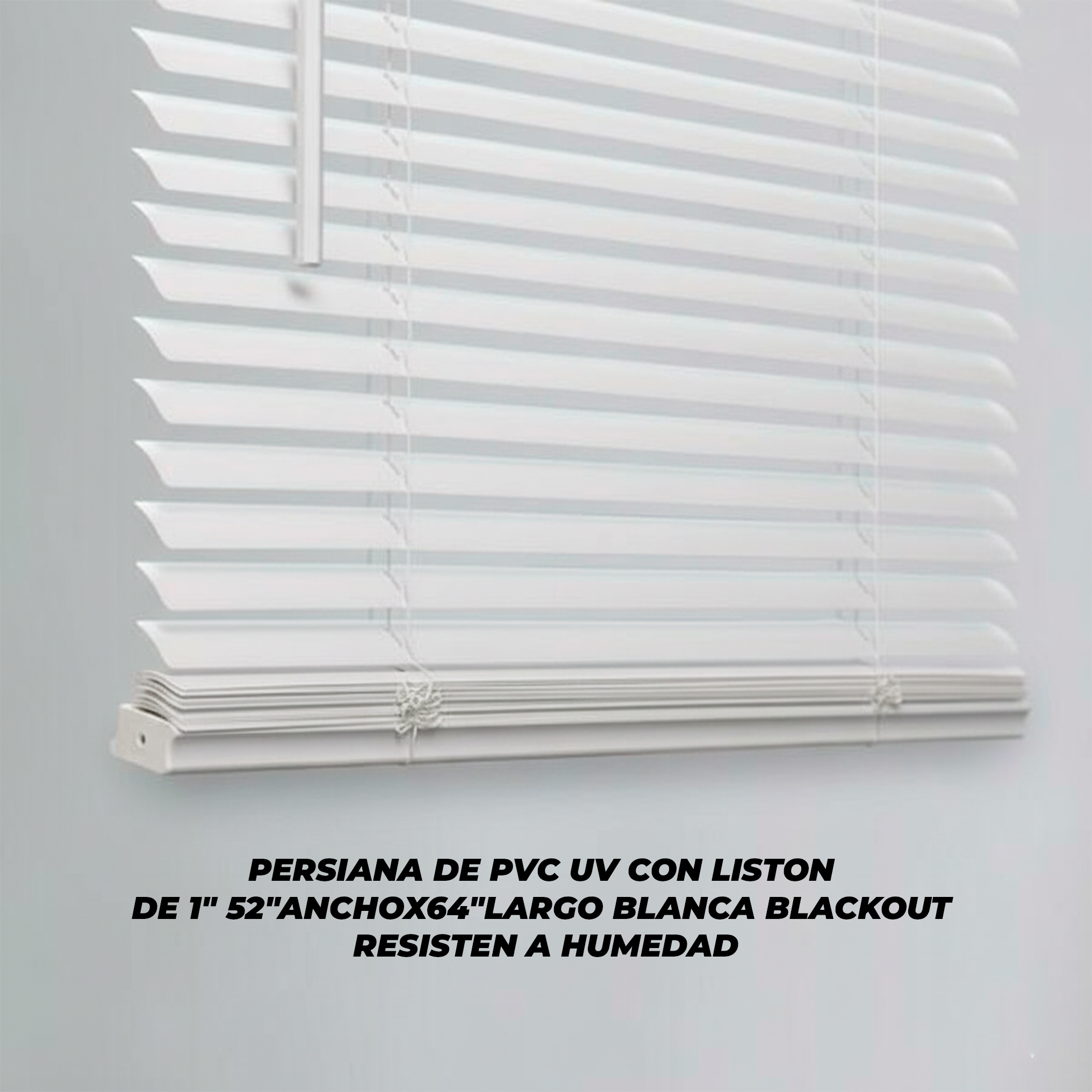 PPERSIANA DE PVC UV CON LISTON DE 1" 52"ANCHOX64"LARGO BLANCA BLACKOUT RESISTEN A HUMEDAD,HAMPTON BA