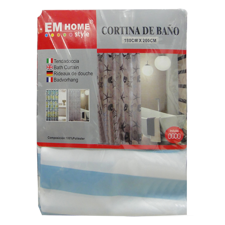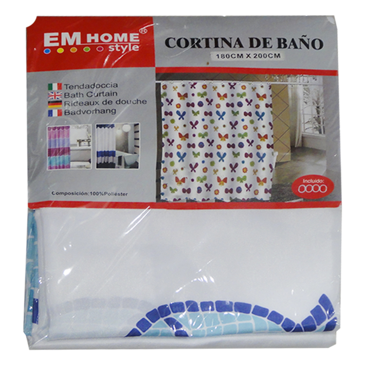 CORTINA DE BAÑO 180CM ALTO X 200CM ANCHO DISEÑO MONOCROMO