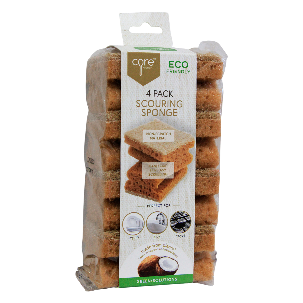 SET 4 ESPONJAS DE FIBRA COCO PARA FREGAR PLATOS, LAVATRASTOS, ESTUFA.