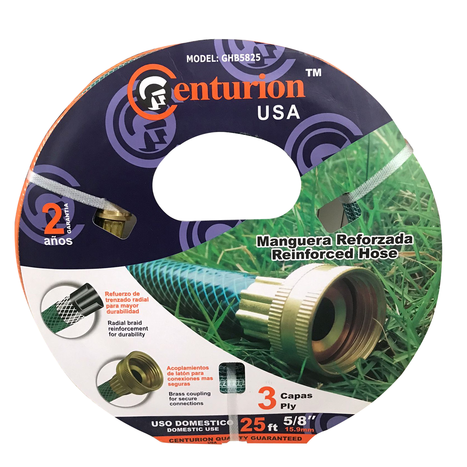 MANGUERA REFORZADA 5/8" CONECCIONES DE BRONCE 100´ MARCA CENTURION