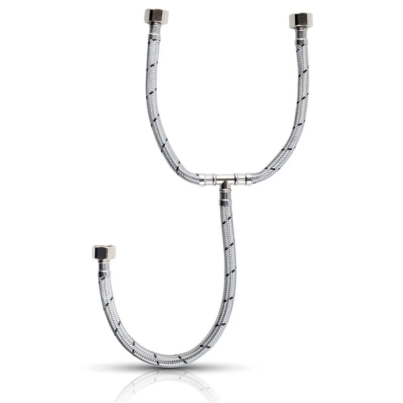 MANGUERA TEE TRENZADA DE ALUMINIO 1/2X1/2X1/2" LARGO 55 CM PARA FREGADERO /LAVADO 55 CM