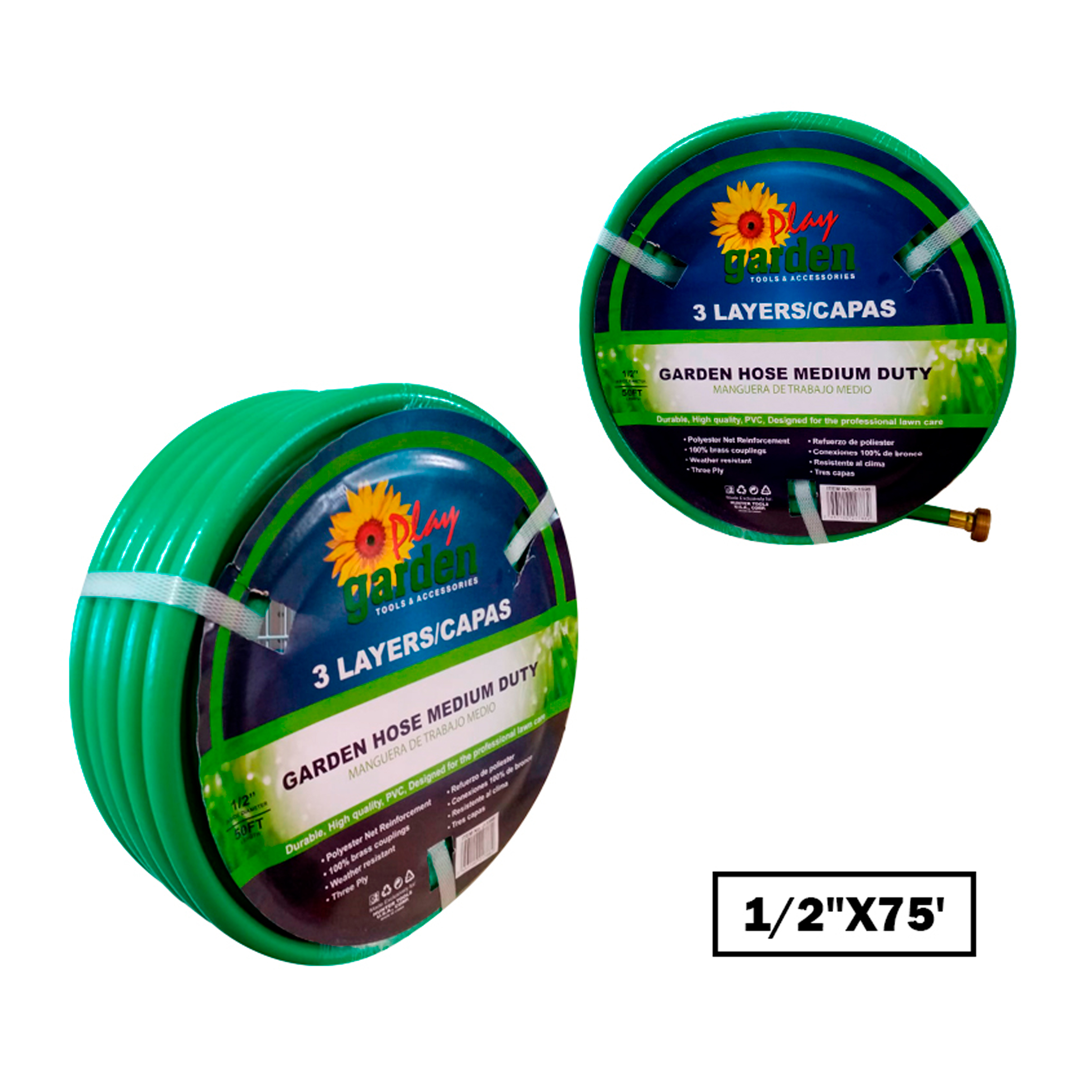 MANGUERA VERDE 1/2"X75 PARA JARDIN, 3 CAPAS