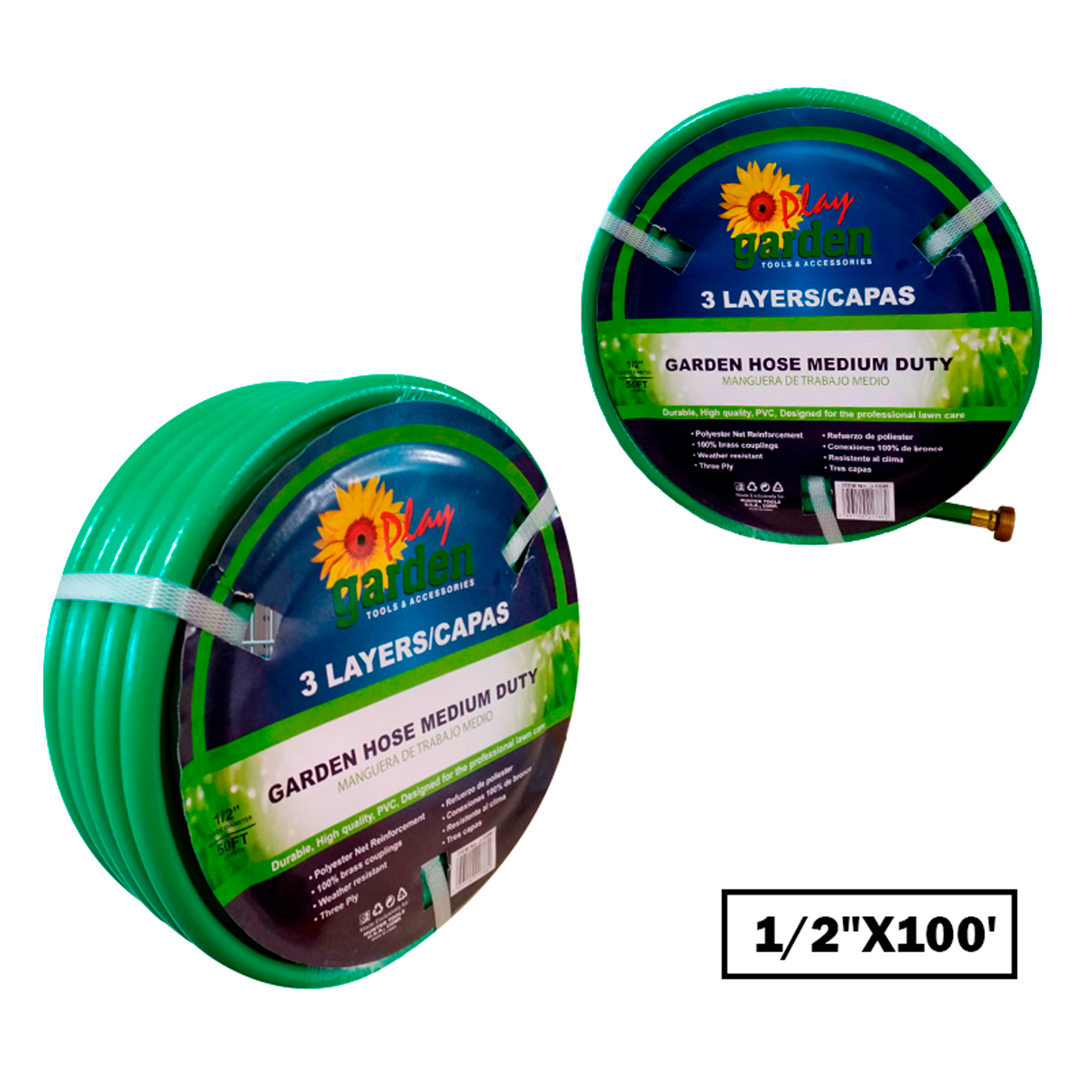 MANGUERA VERDE 1/2"X100 PARA JARDIN, 3 CAPAS