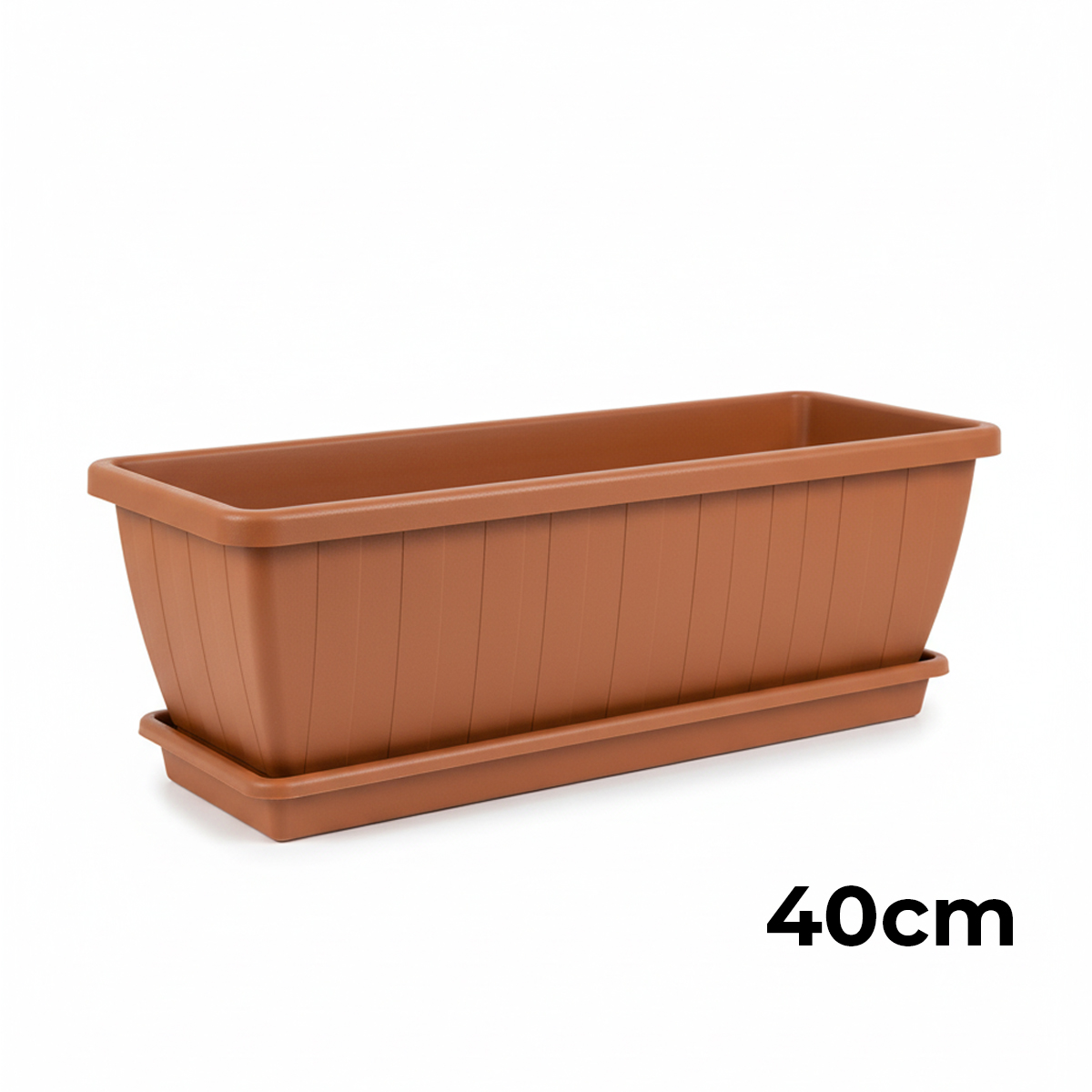 MACETERA KEZAR 40CM TERRACOTA RECTANGULAR CON BANDEJA INCORPORADA