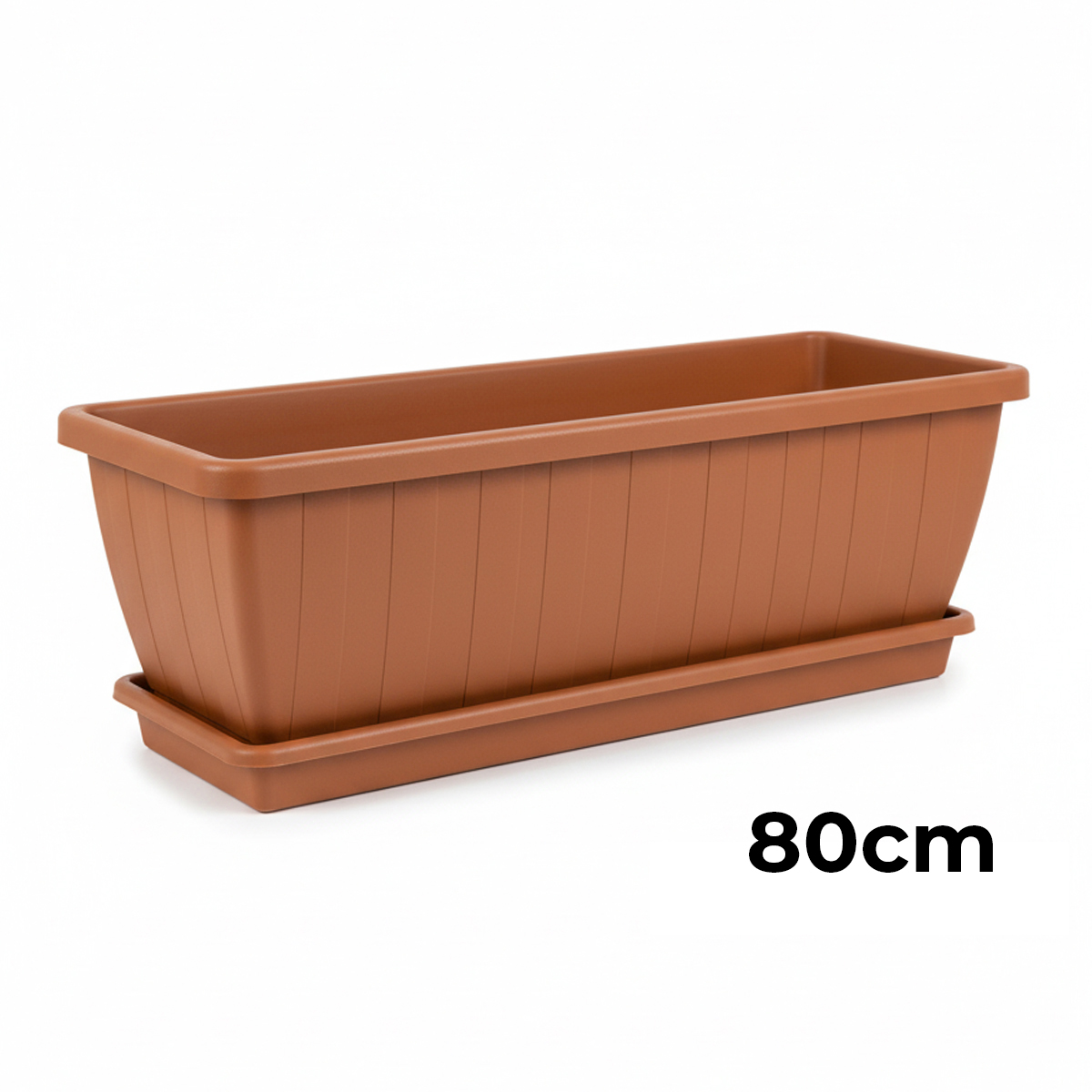 MACETERA KEZAR 80CM TERRACOTA RECTANGULAR CON BANDEJA INCORPORADA
