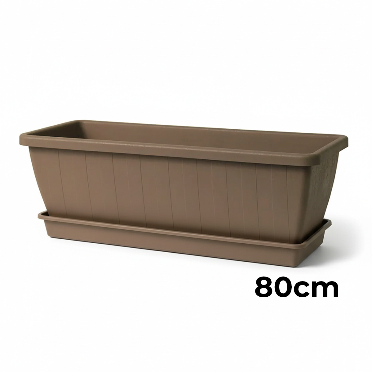 MACETERA KEZAR 80CM TAUPE RECTANGULAR CON BANDEJA INCORPORADA