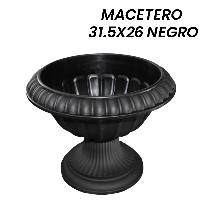 MACETERO 33X30CM REDONDO PLASTICO NEGRO DISEÑO RELIEVE