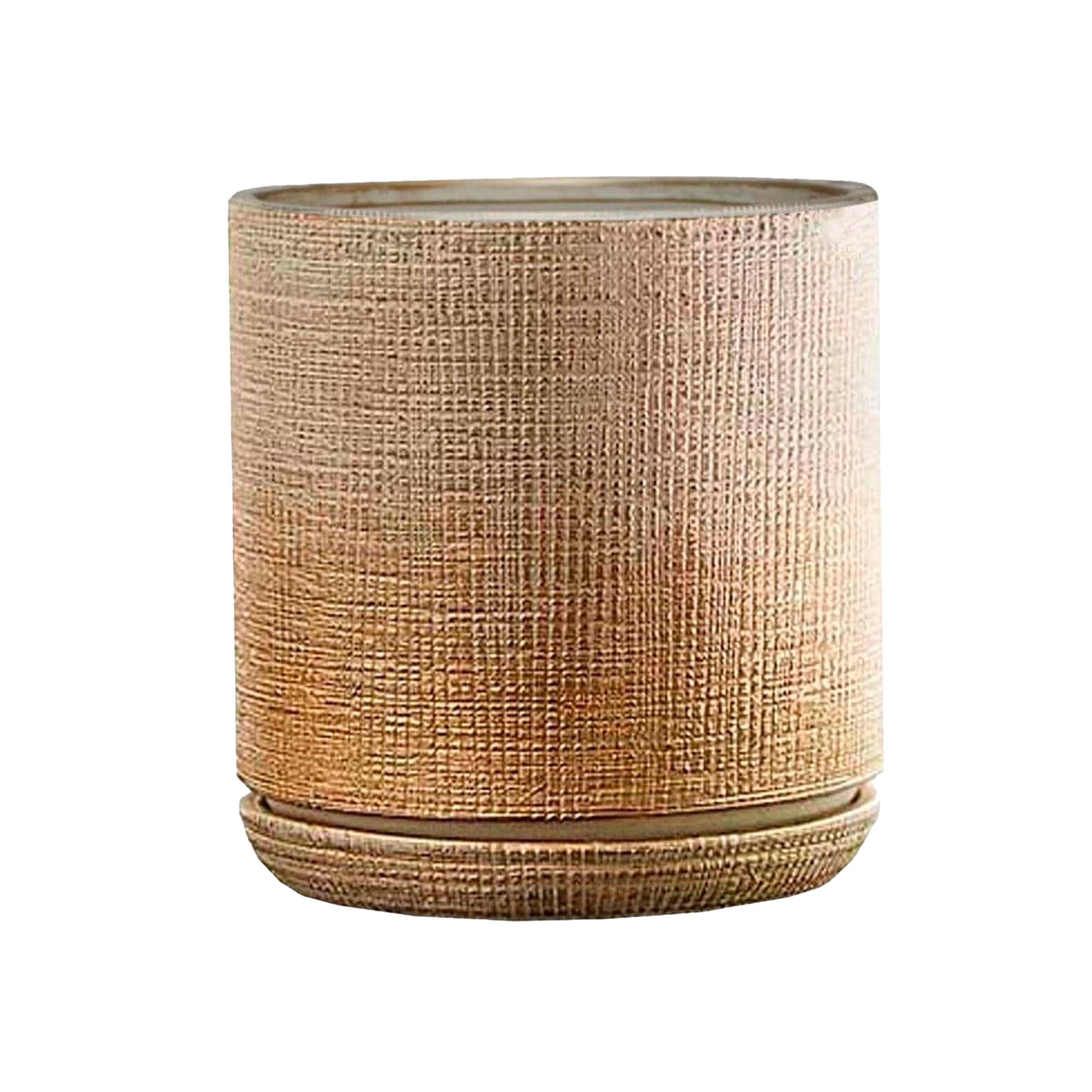 MACETERA REDONDA 21.75" C/TEJIDO SINTETICO DE LAZO COLOR BEIGE,