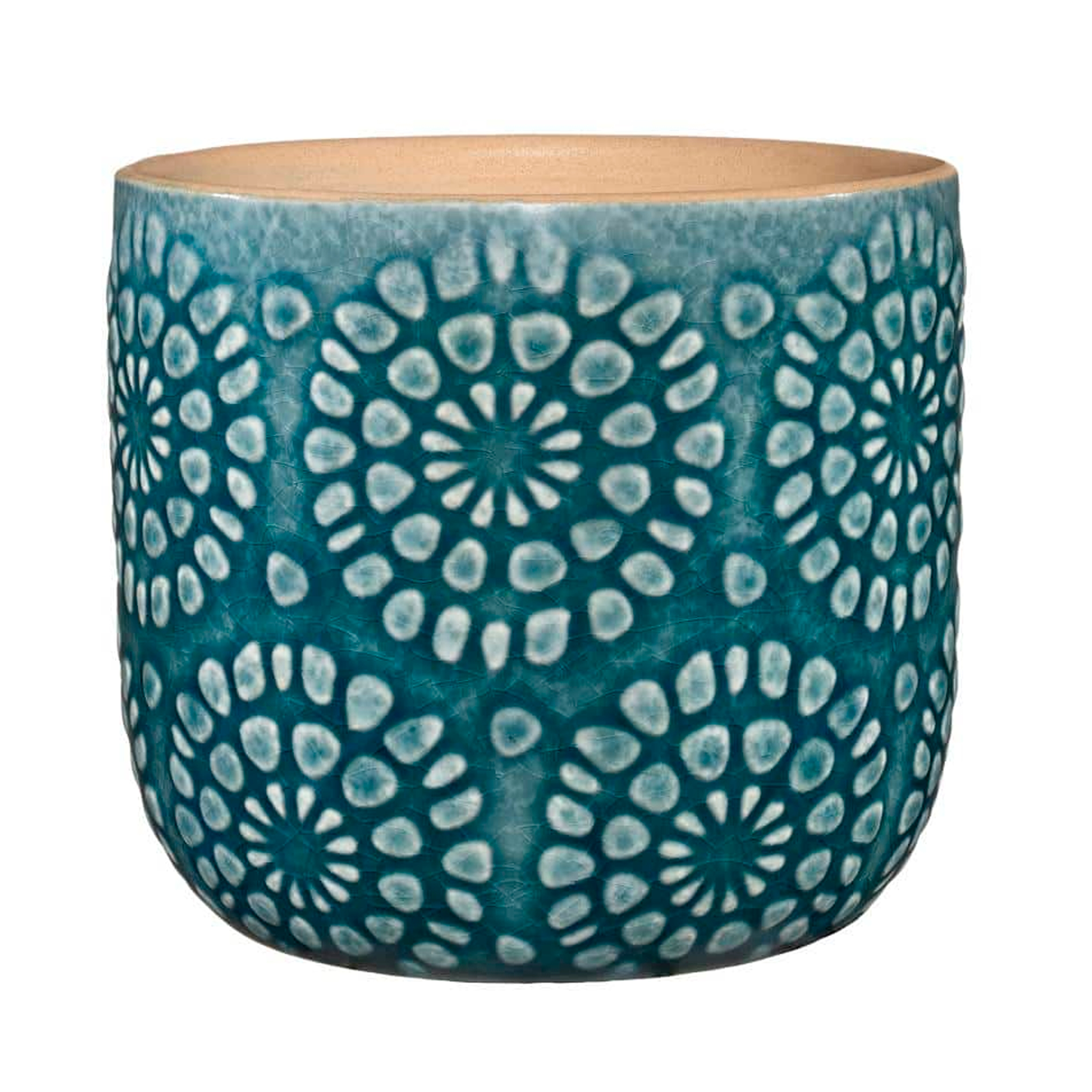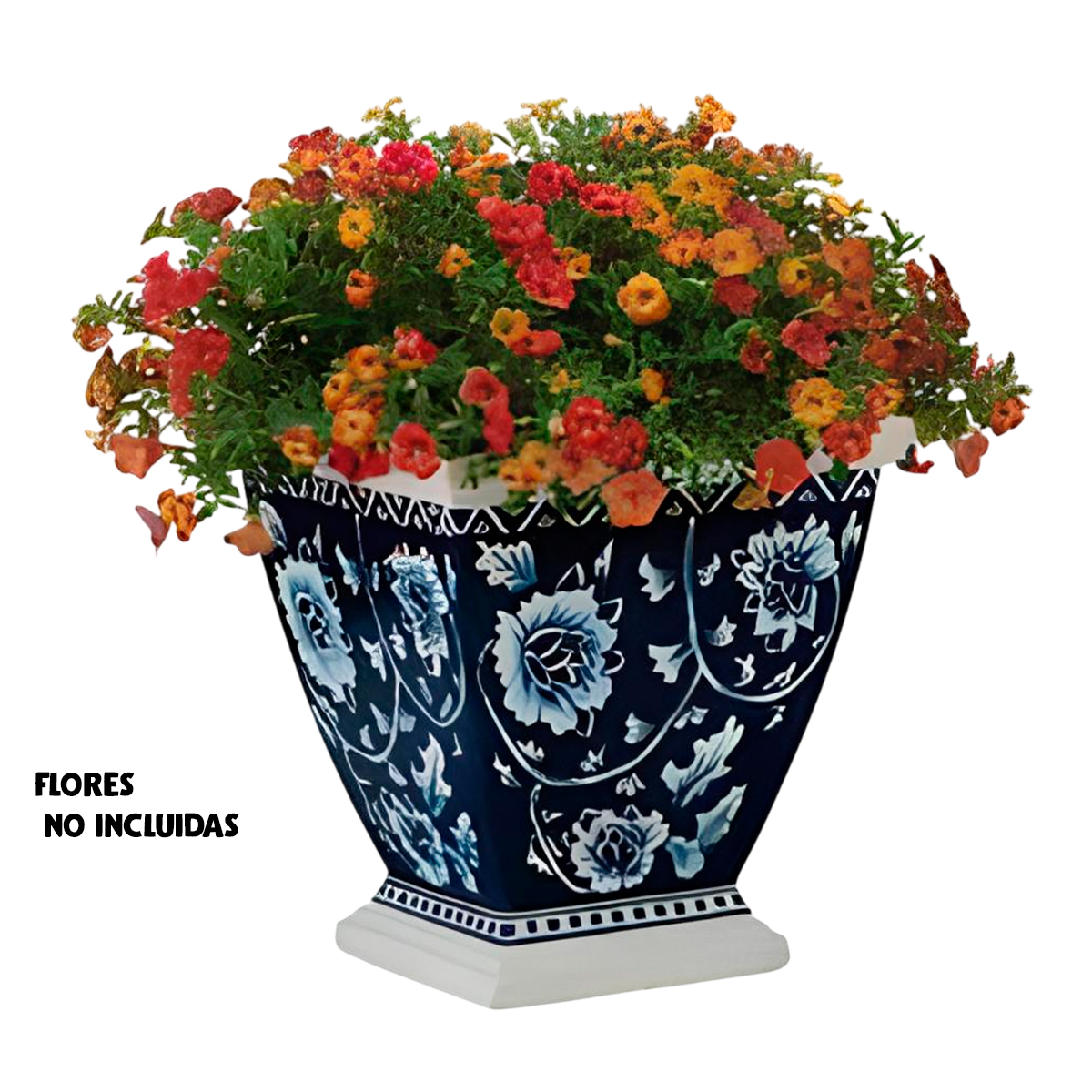 MACETERA MEDIANA 10"X10" DE MELAMINA DISEÑO DE ENREDADERA Y FLORES AZUL