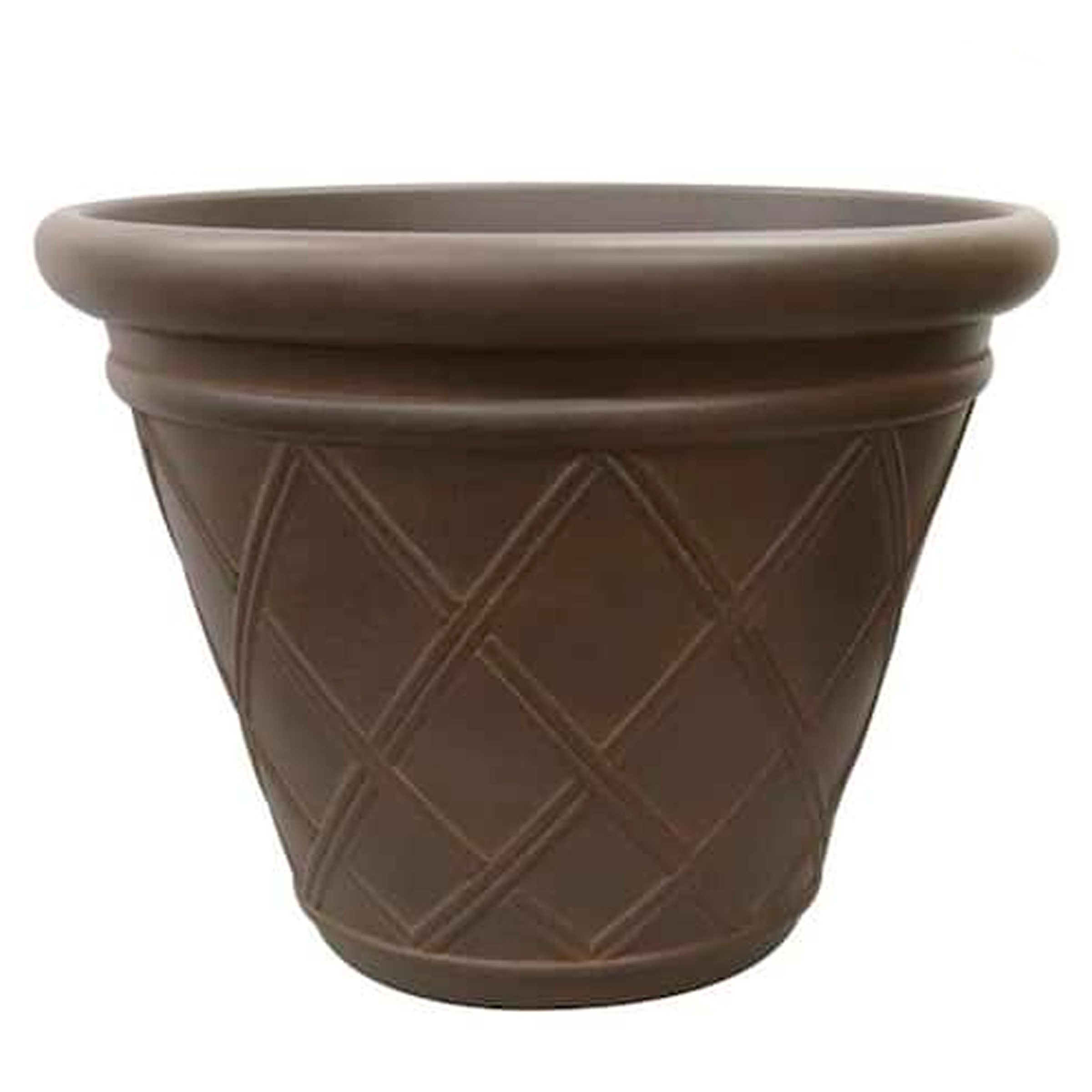 MACETERA GRANDE 17.5"X13.3" DE PLASTICO CAFÉ CON ORIFICIO DE DRENAJE, VIGORO.