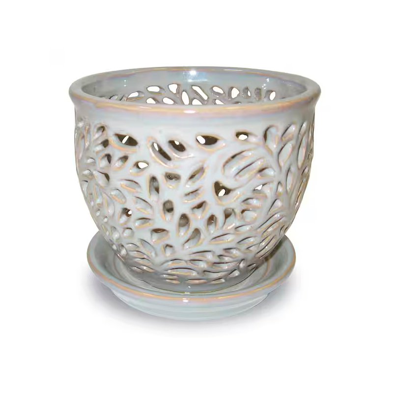 MACETERA PEQUEÑA 5.25"X5" D/CERAMICA GRIS CON DRENAJE Y PLATILLO, VIGORO.