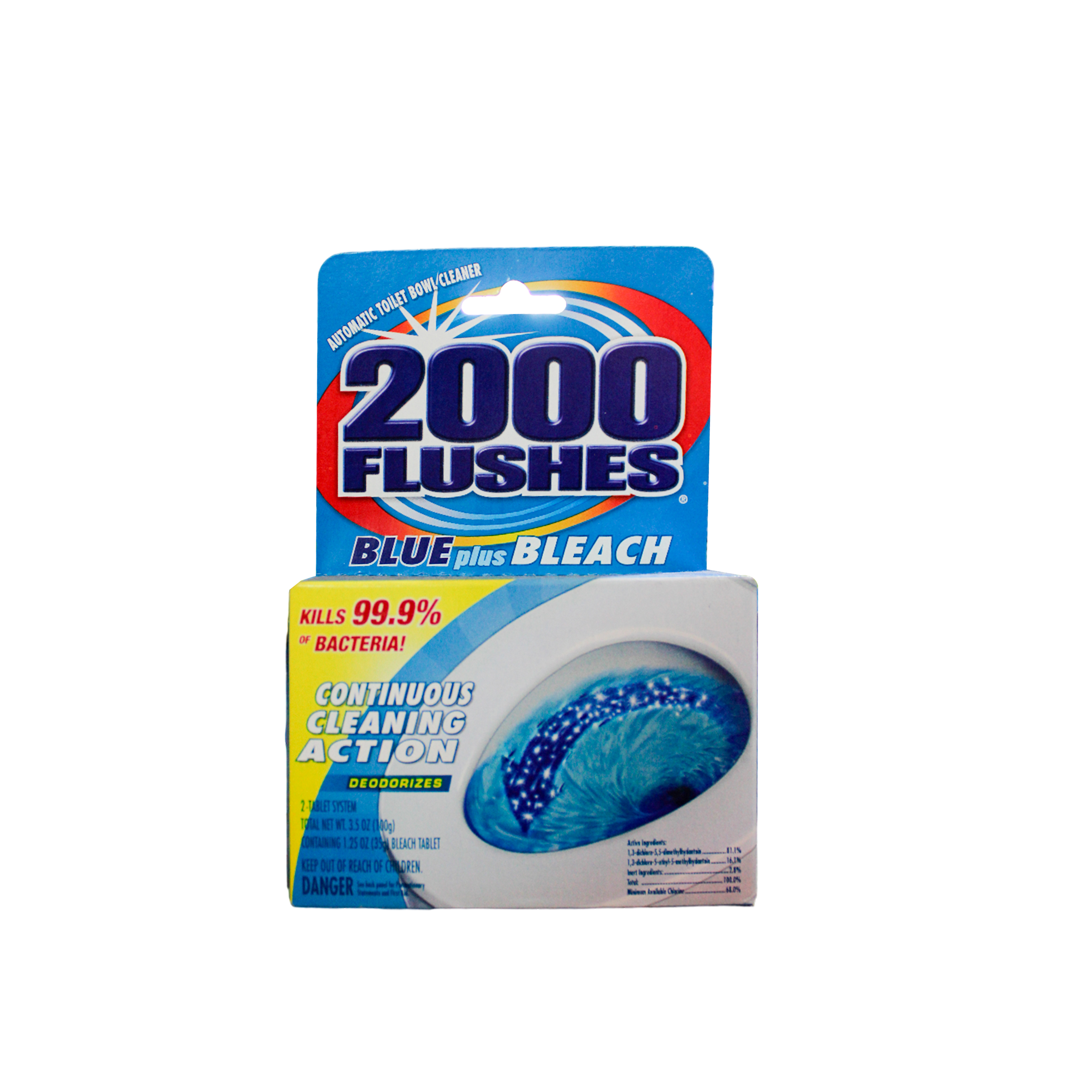 • 2000 FLUSHES BLUE PLUS BLEACH LIMPIADOR AUTOMATICO P/TANQUE INODORO 3.5 OZ.