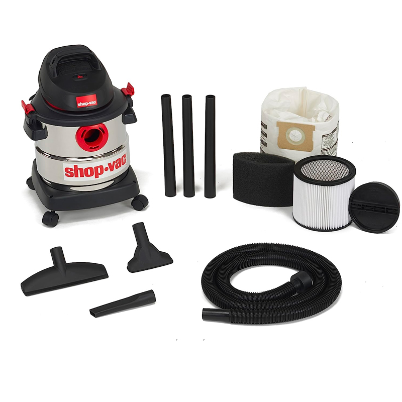 ASPIRADORA ACERO INOX Y POLIETILENO 5 GAL 4.5PHP HUMEDO/SECO C/RODOS 19.5"ALTOX13.5"Ø SHOP VAC