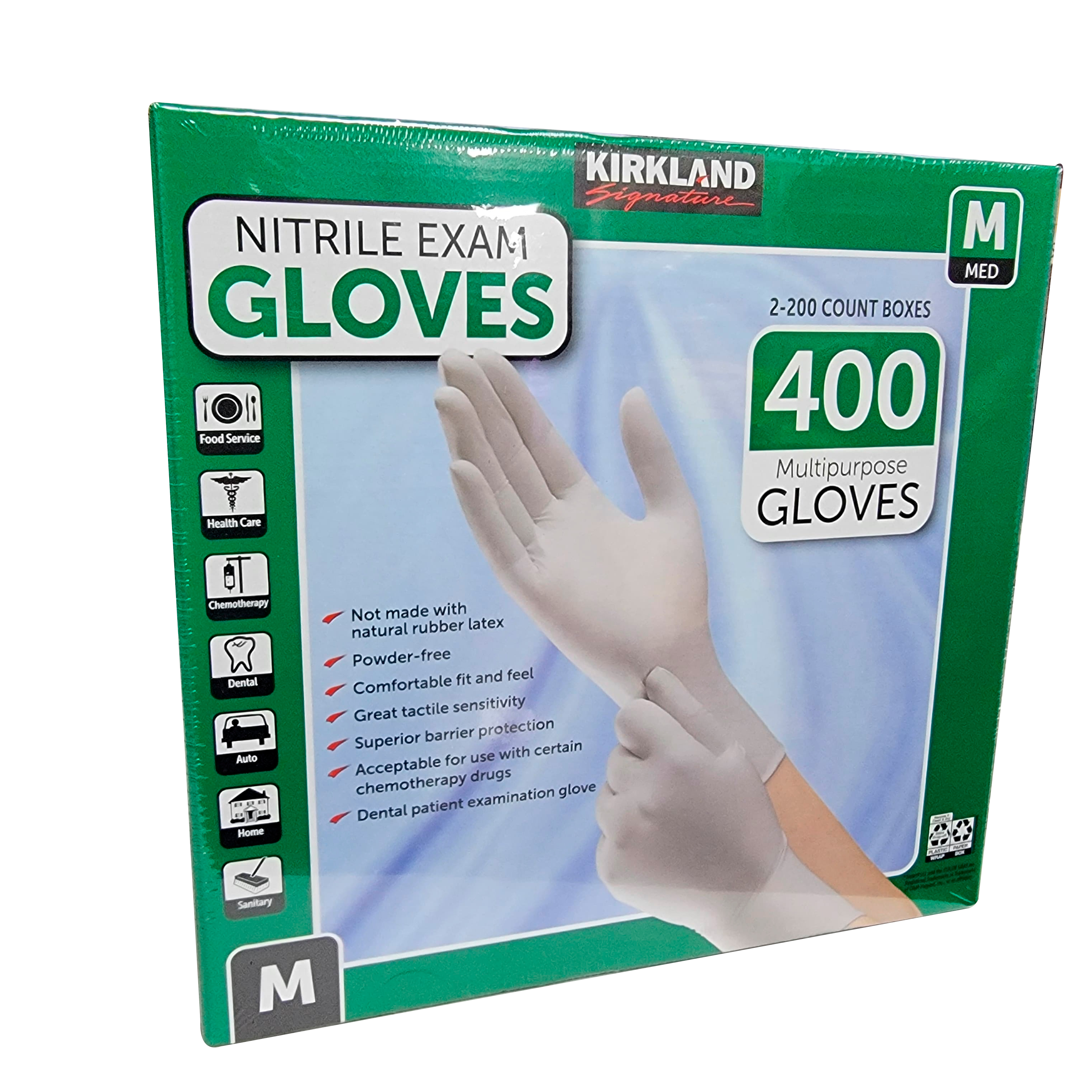 CAJA DE 400 GUANTES DESECHABLES DE NITRILO MARCA KIRKLAND S. TALLA M