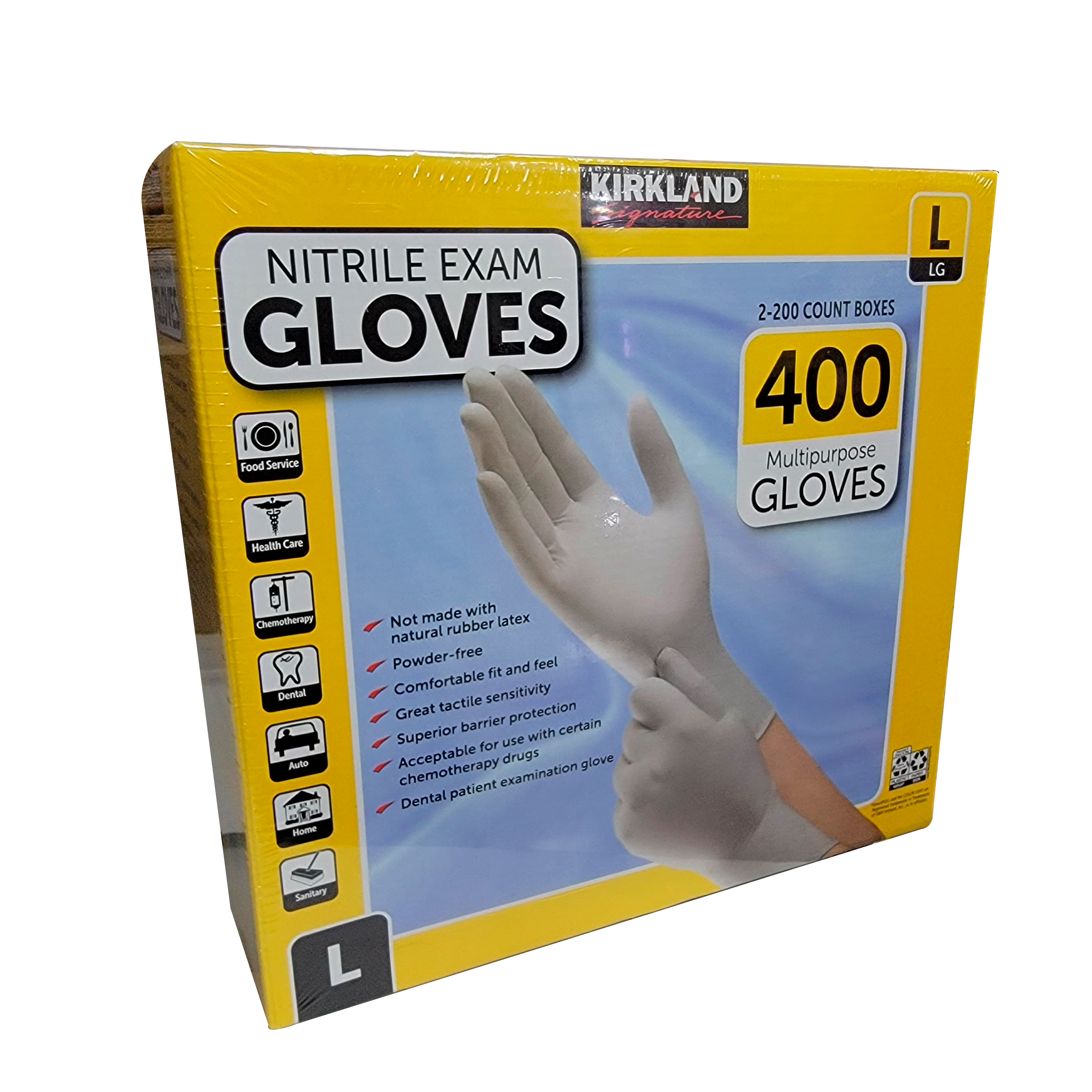 CAJA DE 400 GUANTES DESECHABLES DE NITRILO MARCA KIRKLAND S. TALLA L