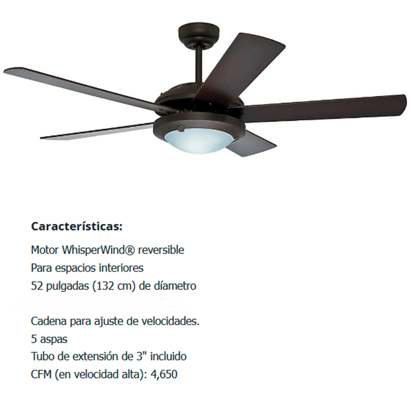 VENTILADOR TECHO SOLARIS 52" REVOLUTIONS BRONCE NUEVO 5 ASPAS CON LUZ, MOTOR Y ASPAS REVERSIBLES