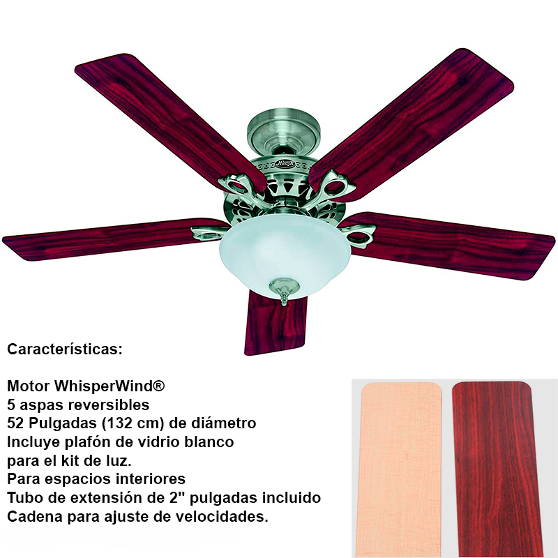 VENTILADOR DE TECHO 52" STANFORD NIQUEL CEPILLADO TRADITIONAL 5 ASPAS CON LUZ, MOTOR Y ASPAS REVERSI