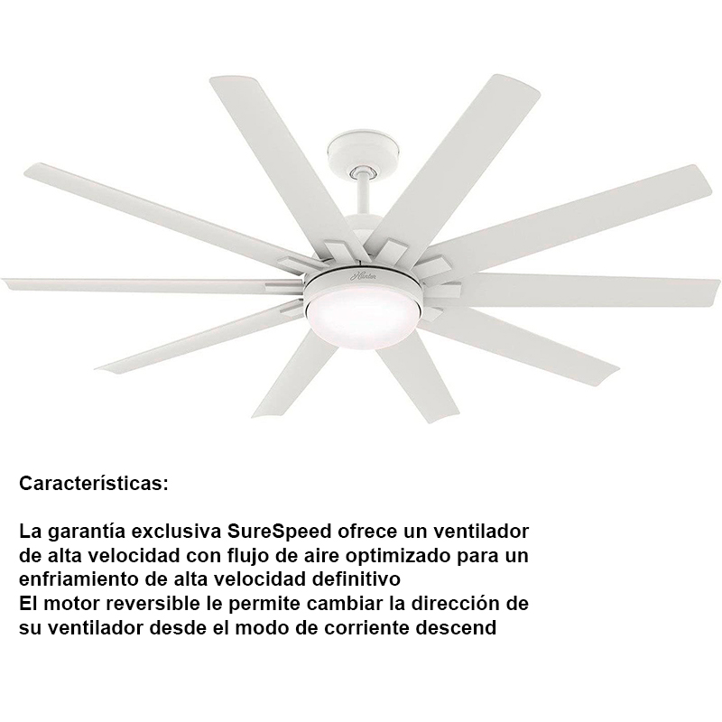 VENTILADOR DE TECHO OVERTON 72" BLANCO MATE 10 ASPAS C/LUZ LED, INT/EXT.CONTROL DE PARED, MOTOR REVE
