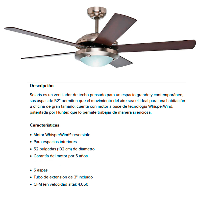 VENTILADOR DE TECHO SOLARIS 52" REVOLUTIONS CHOCOLATE 5 ASPAS CON LUZ, MOTOR Y ASPAS REVERSIBLES
