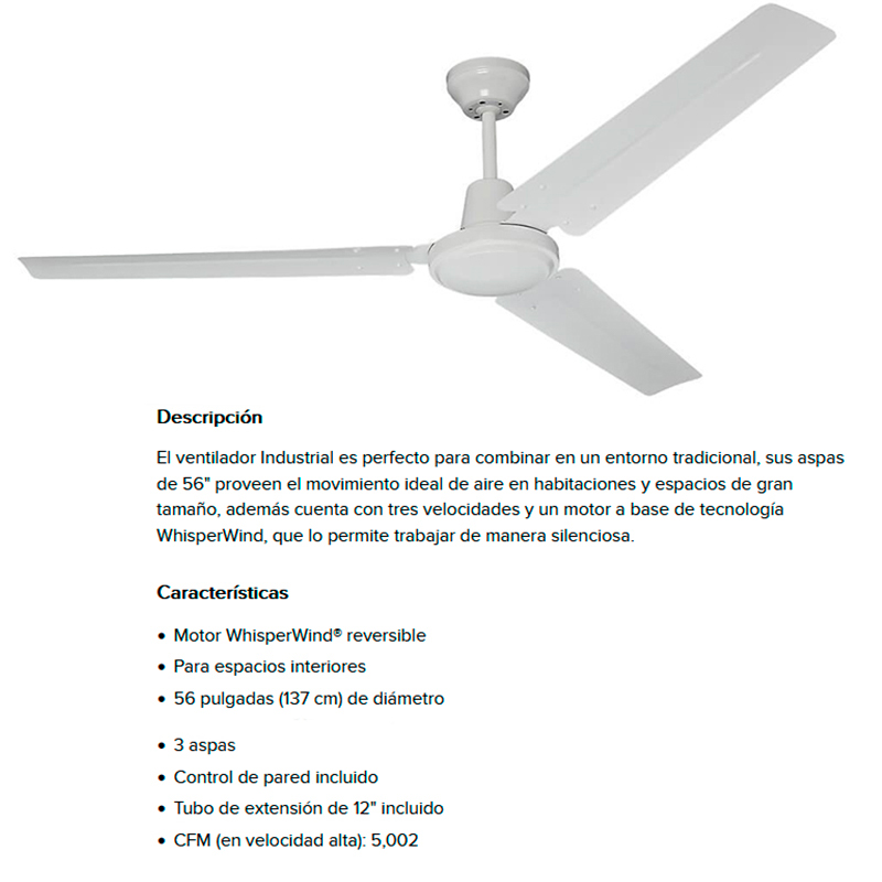 VENTILADOR TECHO 56" INDUSTRIAL BLANCO 120V