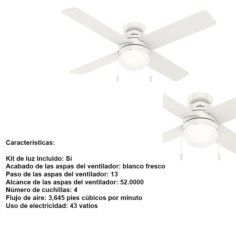 VENTILADOR DE TECHO CRESTFIELD 54""ACABADO EN BLANCO 4 ASPAS C/LAMPARA INT/EXT