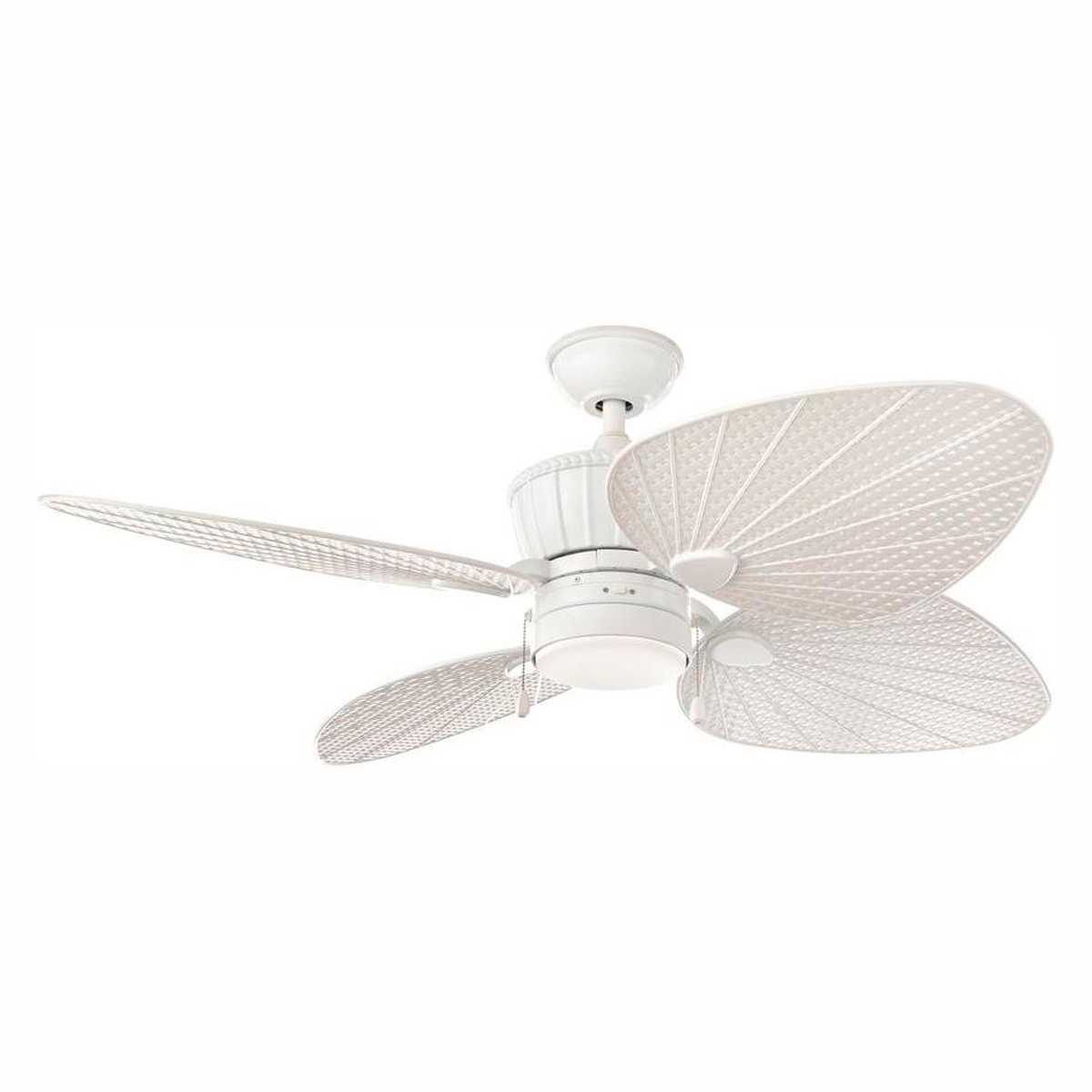 VENTILADOR D/TECHO 52" COLOR BLANCO, LUZ LED REGULABLE, 4ASPAS FORMA DE HOJA, 3 VELOCIDADES, CONTROL