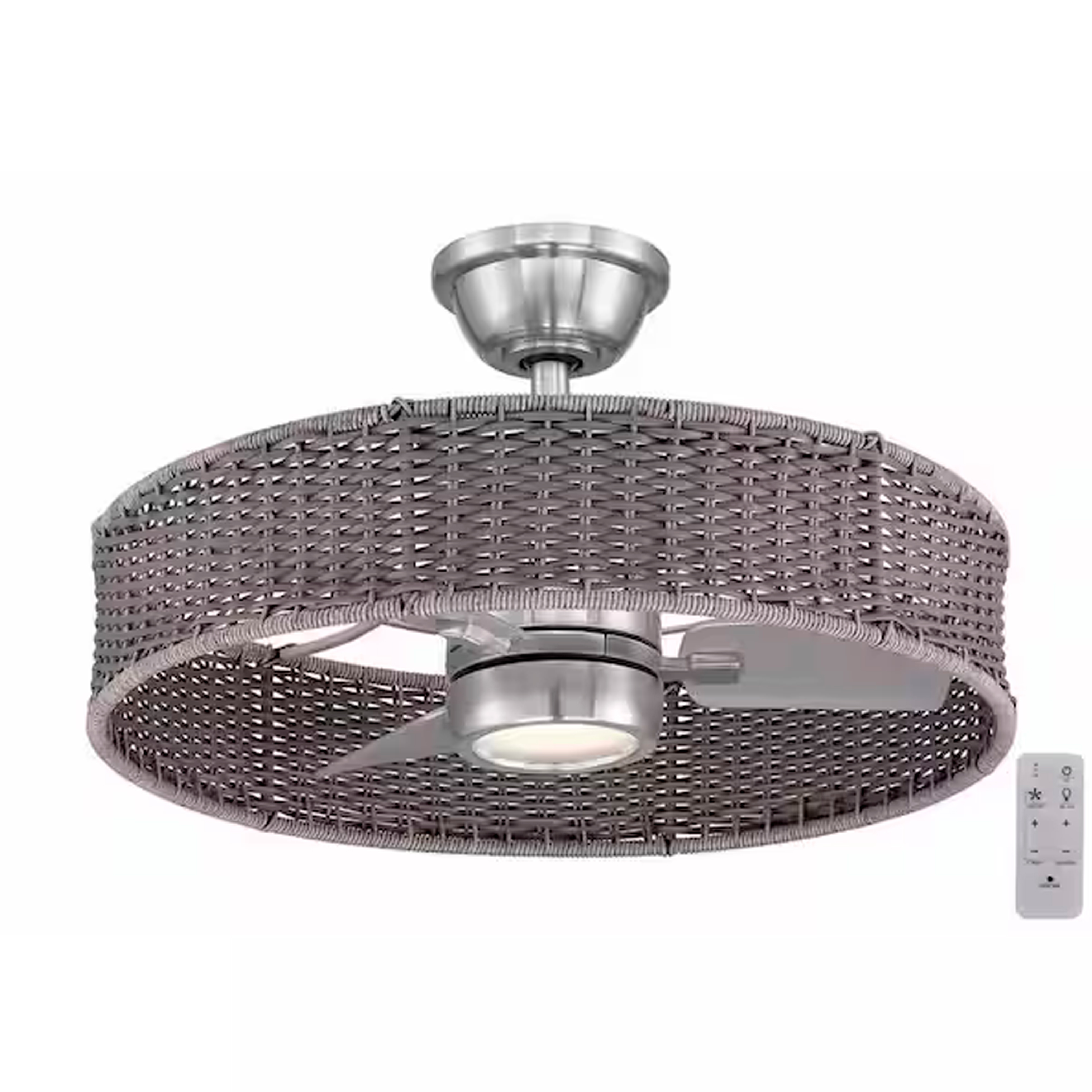 VENTILADOR D/TECHO D/MIMBRE D/NIQUEL CEPILLADO P/INTERIO-EXTERIOR LED BLCO 25PULG C/CONTROL INCLUIDO