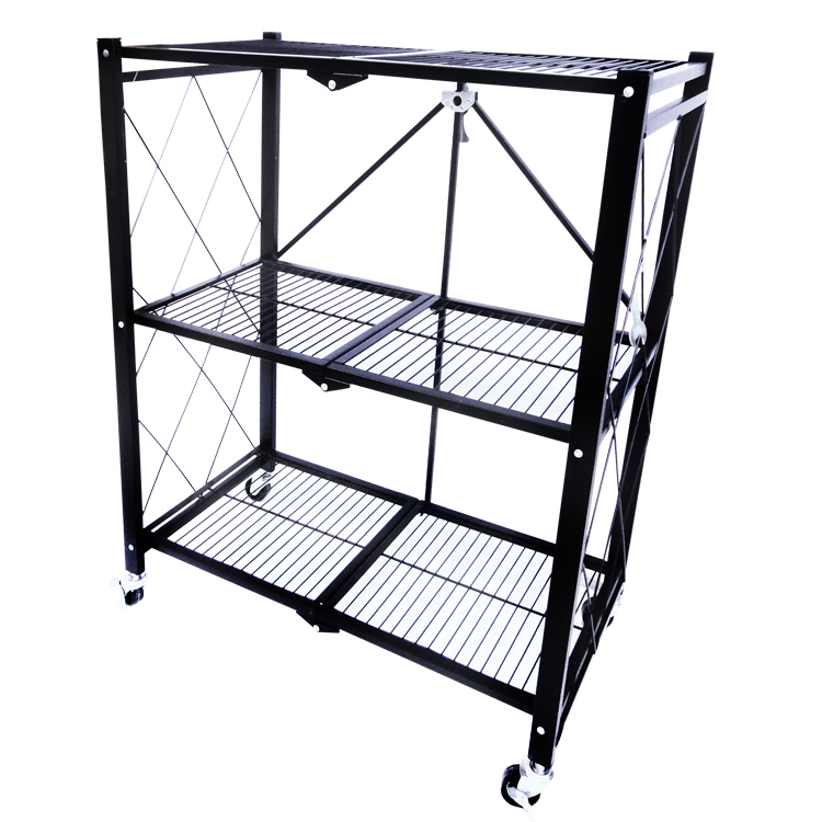 ESTANTE 3 REPISAS ALAMBRE 28X13 3/8X33 7/8" METAL PLEGABLE PARA ALMACENAMIENTO, CON RODOS, NEGRO