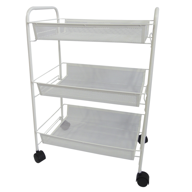 CARRITO 3 NIVELES SIN ASA CON RODOS, 13.9X16.7X30.7" (35.3X42.4X78CM) TUBO 22MM, BLANCO
