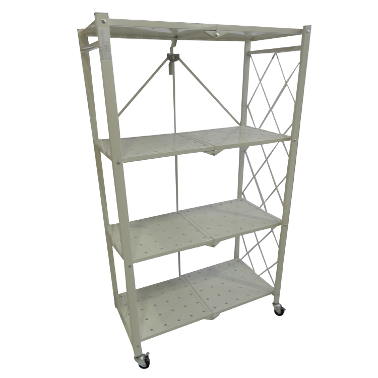ESTANTE 4 REPISAS SOLIDAS 28X13 3/8X48" METAL PLEGABLE PARA ALMACENAMIENTO, CON RODOS, BLANCO
