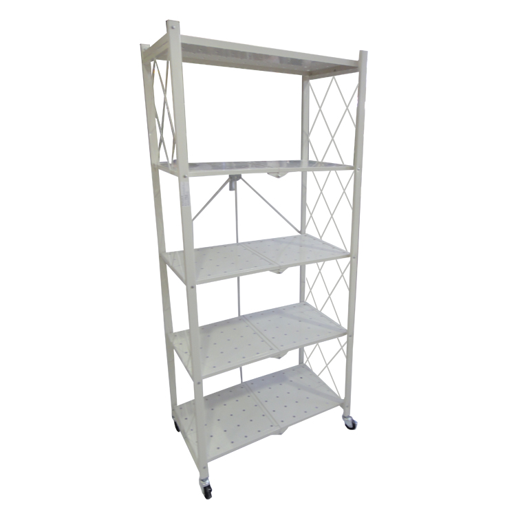 ESTANTE 5 REPISAS SOLIDAS 28X13 3/8X63 3/4" METAL PLEGABLE PARA ALMACENAMIENTO, CON RODOS, BLANCO