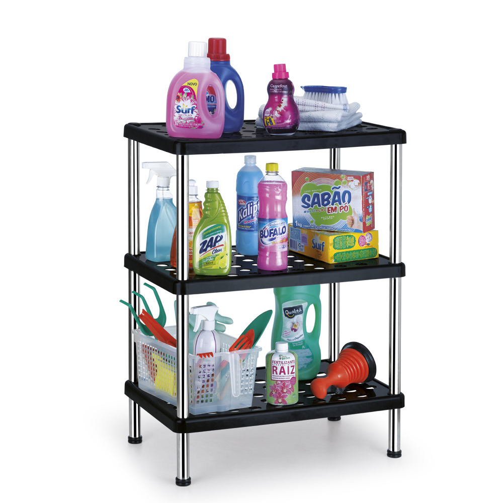ESTANTE PLASTICO MULTIUSOS 3 REPISAS NEGRO 21.75"X12"X27.75CM