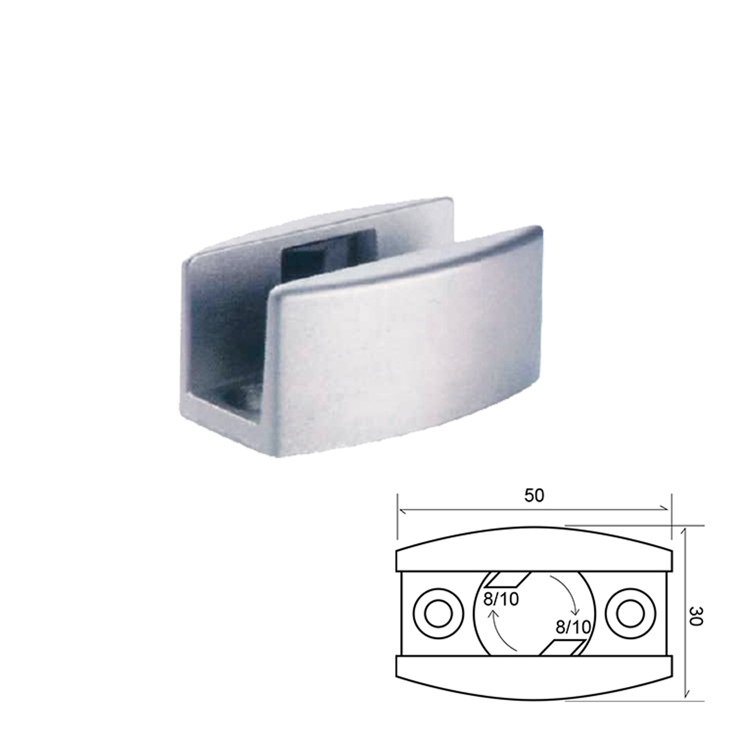 SOPORTE PARA REPISA DE VIDRIO 8-10MM GL885 STAINLESS STEEL, 25MM DE ANCHO