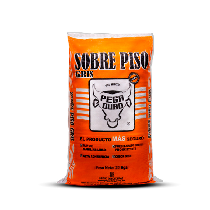 SACO DE ADHESIVO SOBRE PISO GRIS 20KGS, RENDIMIENTO 2 A 2.5M2 DOSIFICACION DE AGUA 4.5 A 5 LTS