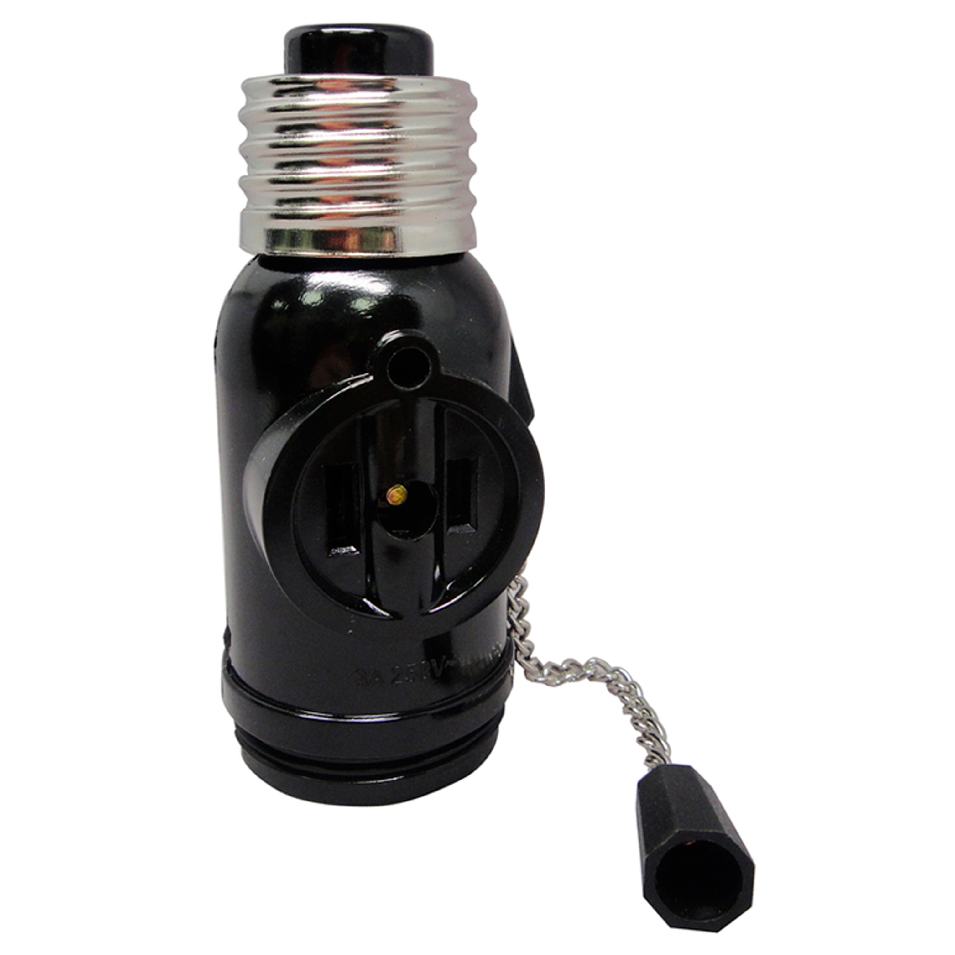 PORTA LAMPARA CON CADENA Y SOCKET/TOMA 3A/250V NEGRO (15-6)
