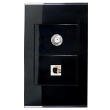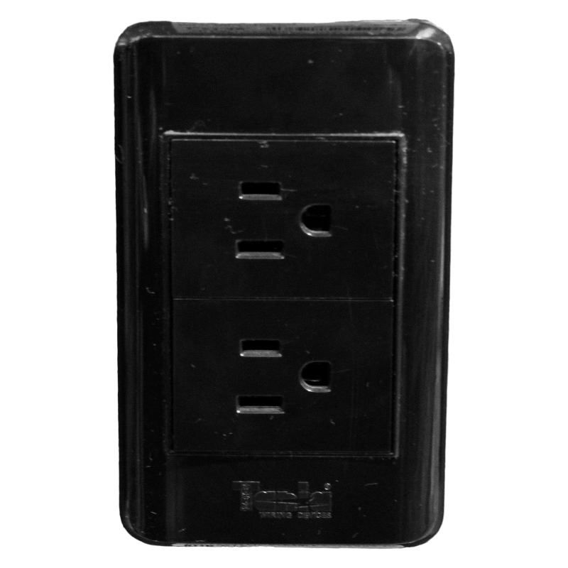 RECEPTACULO DOBLE C/TIERRA NEGRO DELUXE PLATA