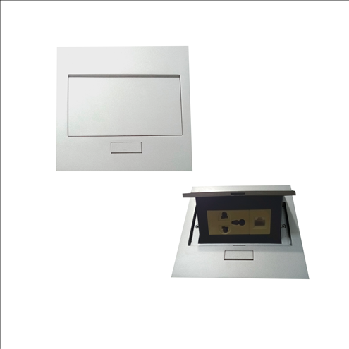 CAJA DE METAL GRIS 5.5¨X2.5¨ EMPOTRABLE EN MESA CON TOMACORRIENTE Y PUERTO RJ45