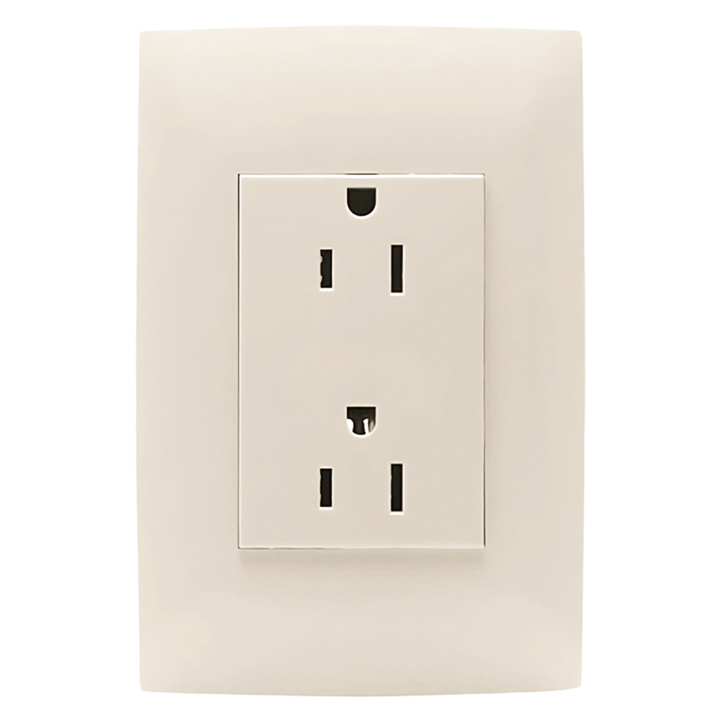 TOMACORRIENTE DUPLEX CON PLACA 15A/125-250V, MARFIL, LINEA 100