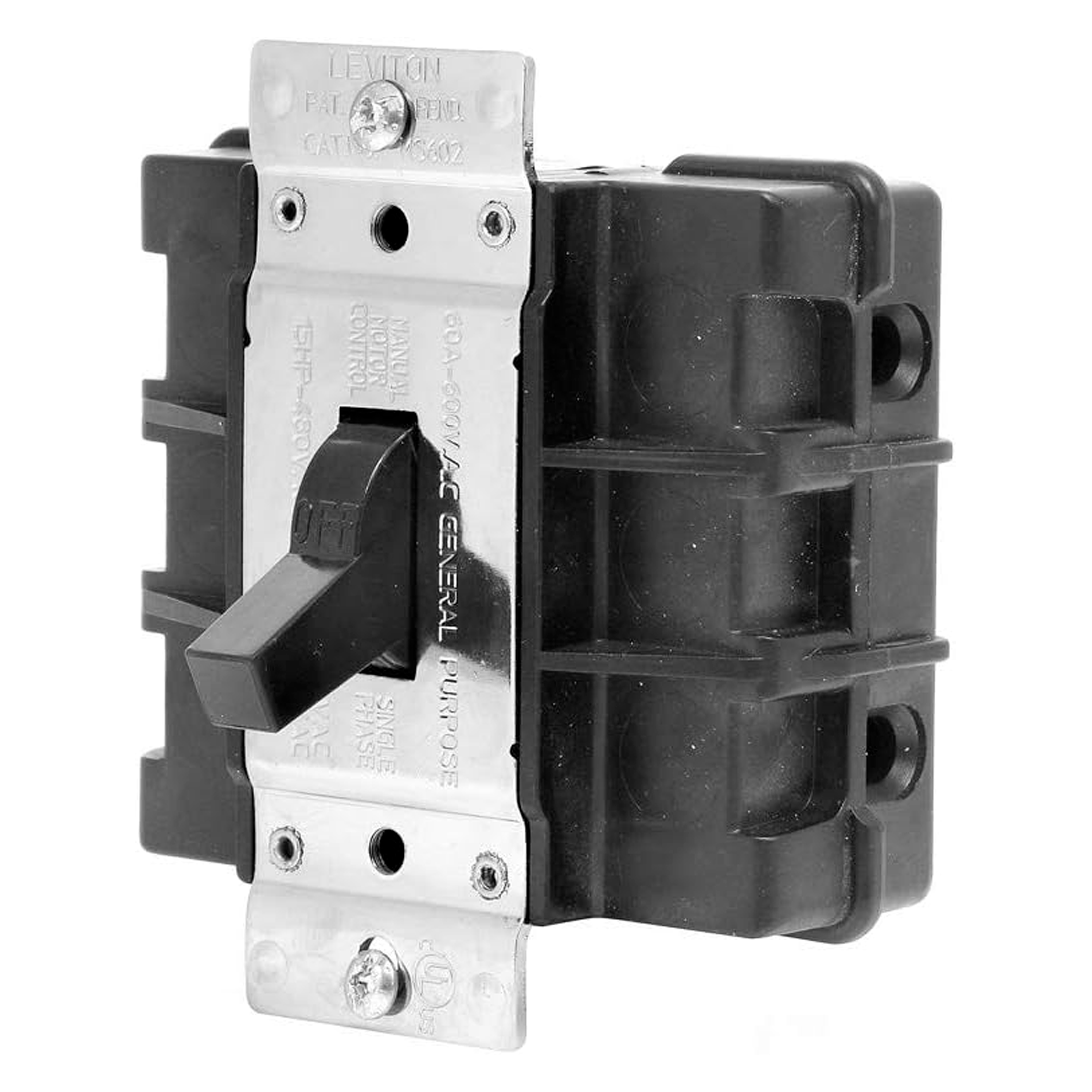 INTERRUPTOR INDUSTRIAL PARA CONTROL DE MOTOR MANUAL 60AMP/600V/2P MONOFASICO, NEGRO