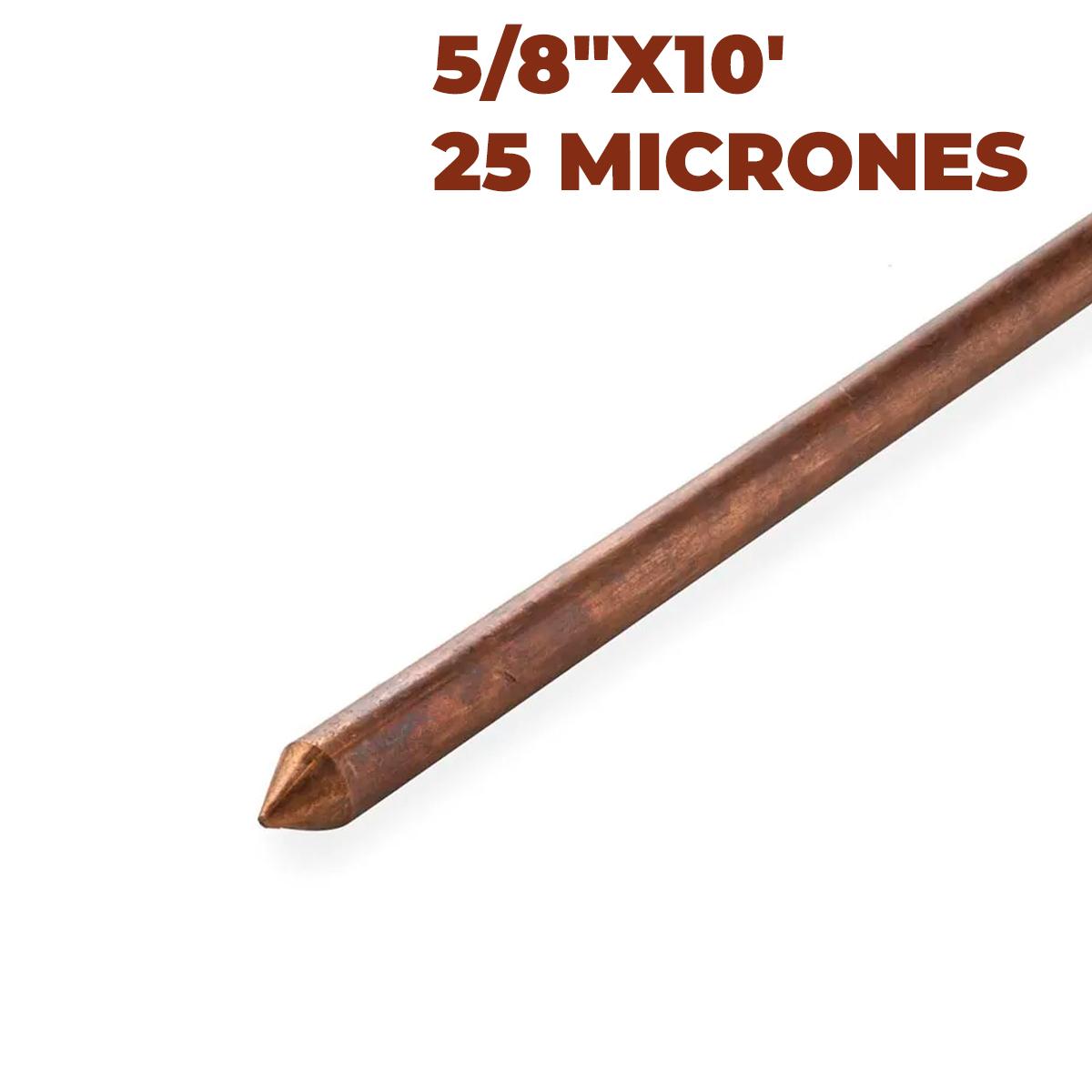 VARILLA P/POLO A TIERRA ORIGINAL DE COBRE NO PINTADA 5/8"X10 25 MICRONES