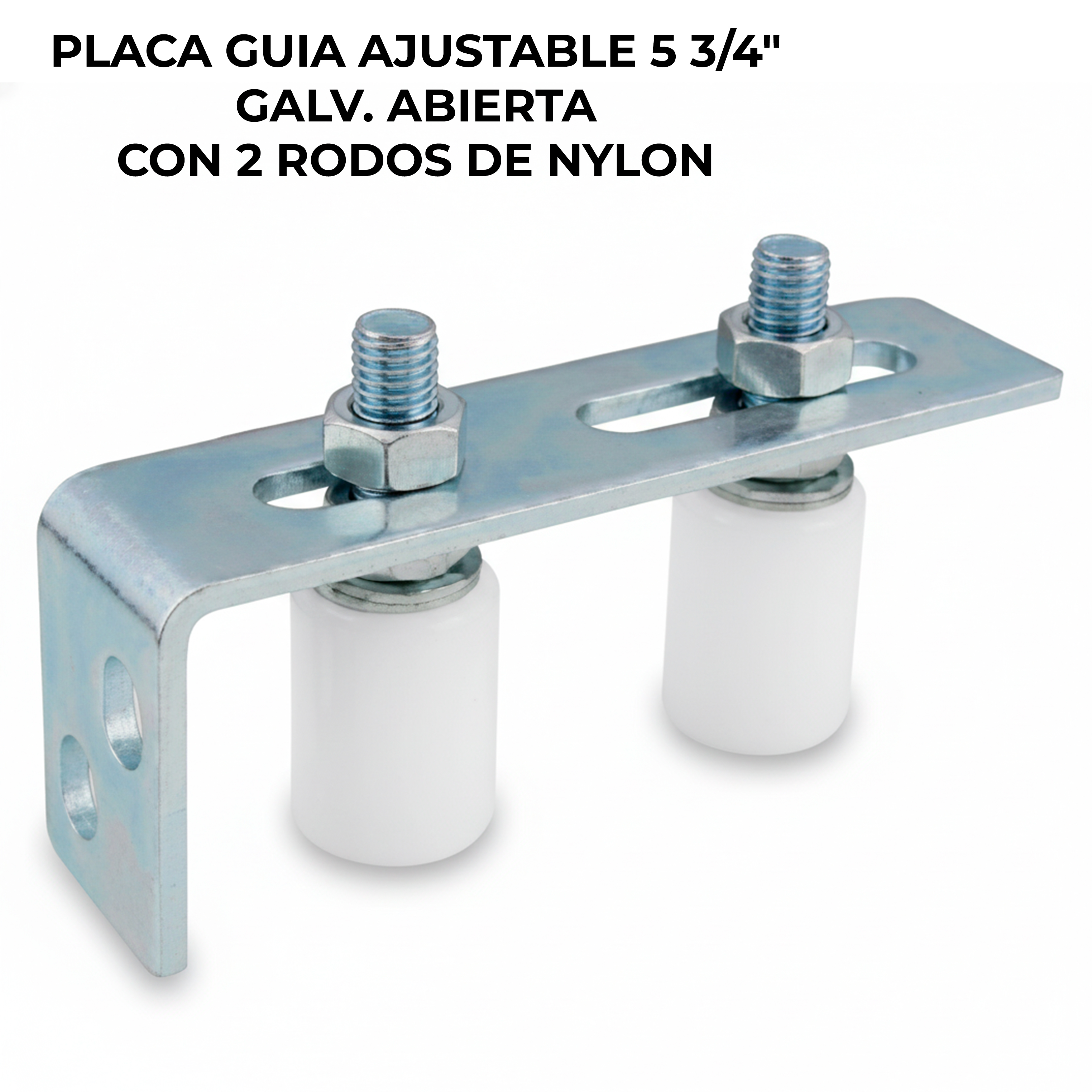 PLACA GUIA AJUSTABLE 5 3/4" GALV. ABIERTA CON 2 RODOS DE NYLON