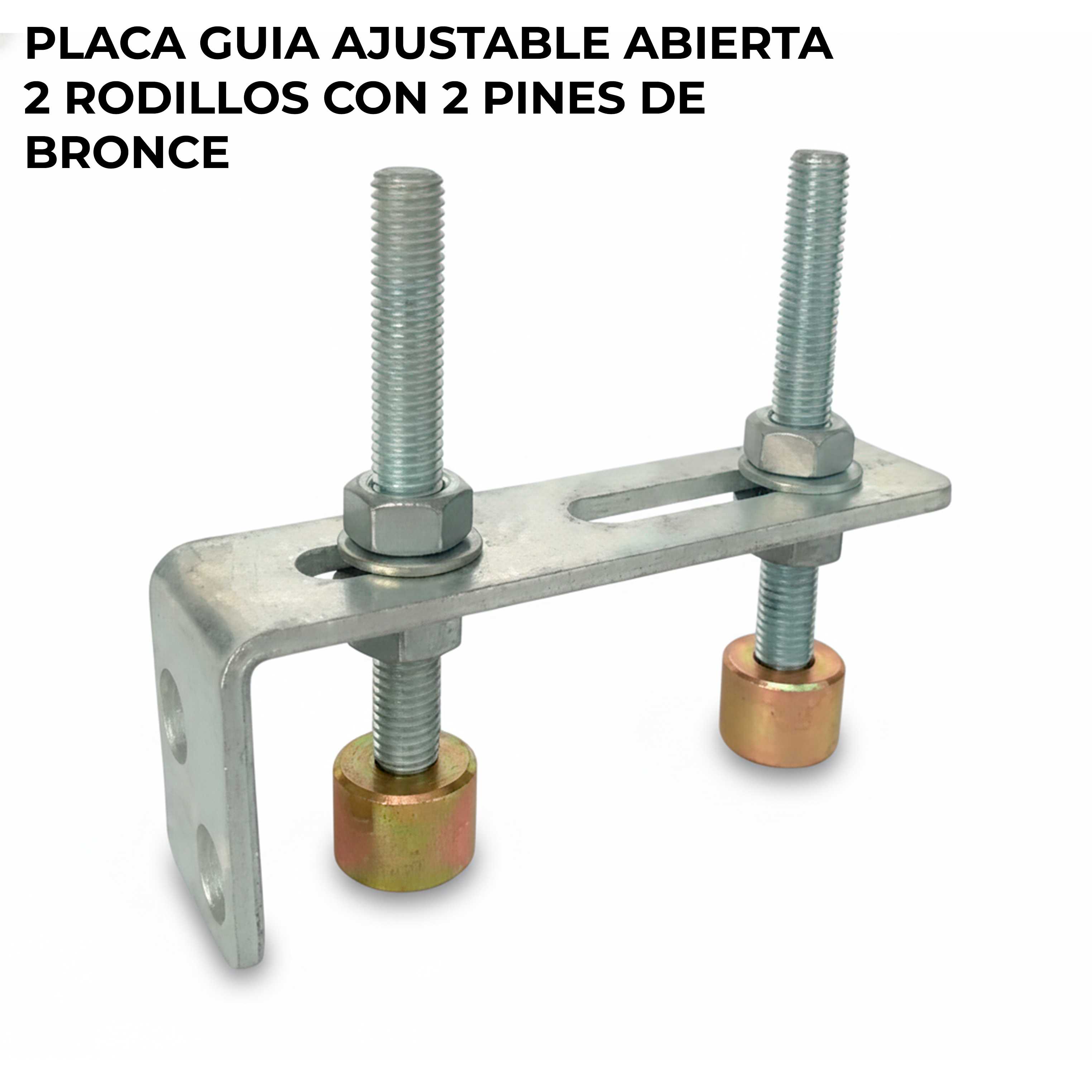 PLACA GUIA AJUSTABLE ABIERTA 2 RODILLOS CON 2 PINES DE BRONCE