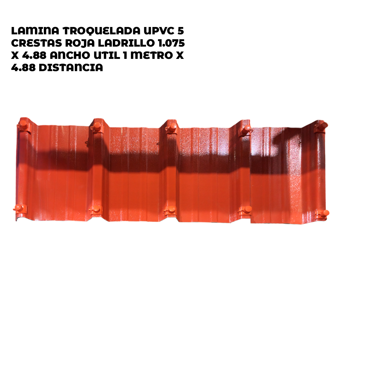 LAMINA TROQUELADA UPVC 5 CRESTAS ROJA LADRILLO 1.075 ANCHO UTIL 1 METRO X 4.88 DISTANCIA ENTRE CREST