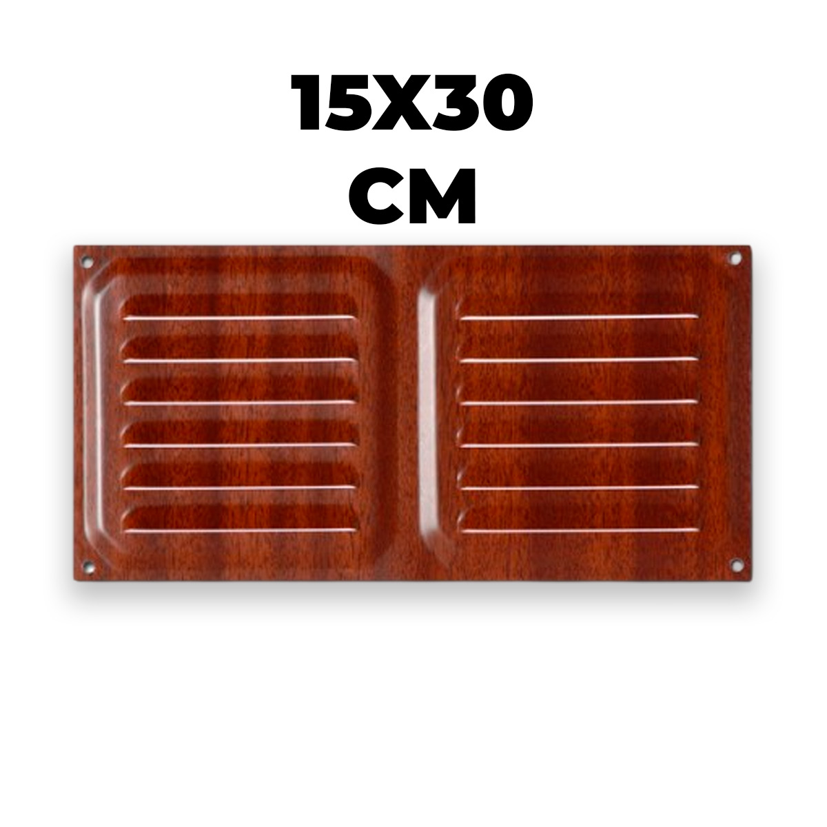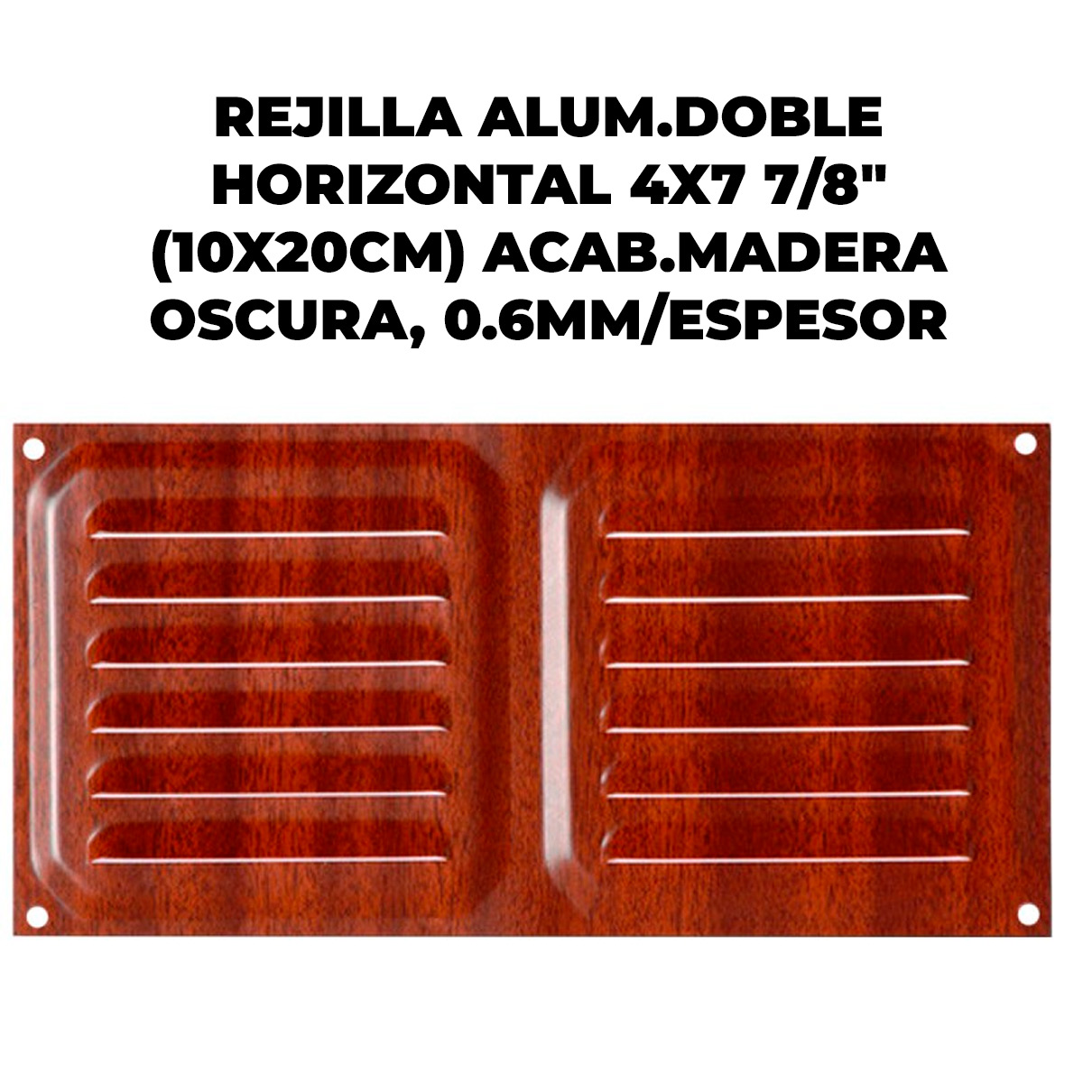 REJILLA ALUMINIO DOBLE HORIZONTAL 4X7 7/8" (10X20CM) ACABADO MADERA OSCURA, 0.6MM/ESPESOR