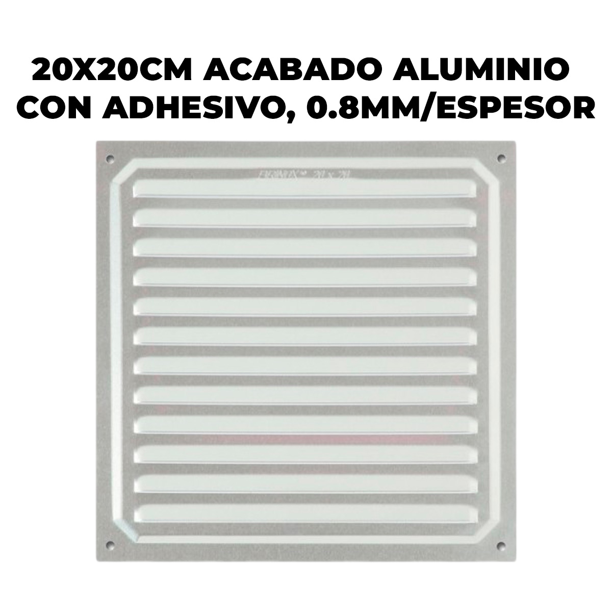 REJILLA ALUMINIO 7 7/8X7 7/8" (20X20CM) ACABADO ALUMINIO CON ADHESIVO, 0.8MM/ESPESOR