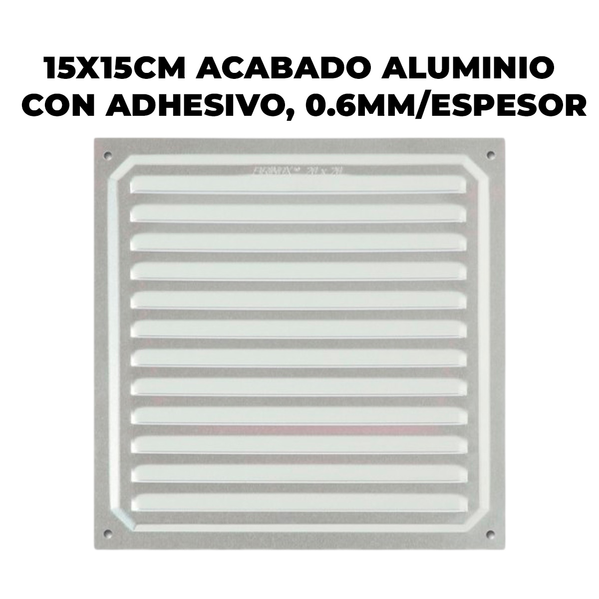REJILLA ALUMINIO 5 7/8X5 7/8" (15X15CM) ACABADO ALUMINIO CON ADHESIVO, 0.6MM/ESPESOR