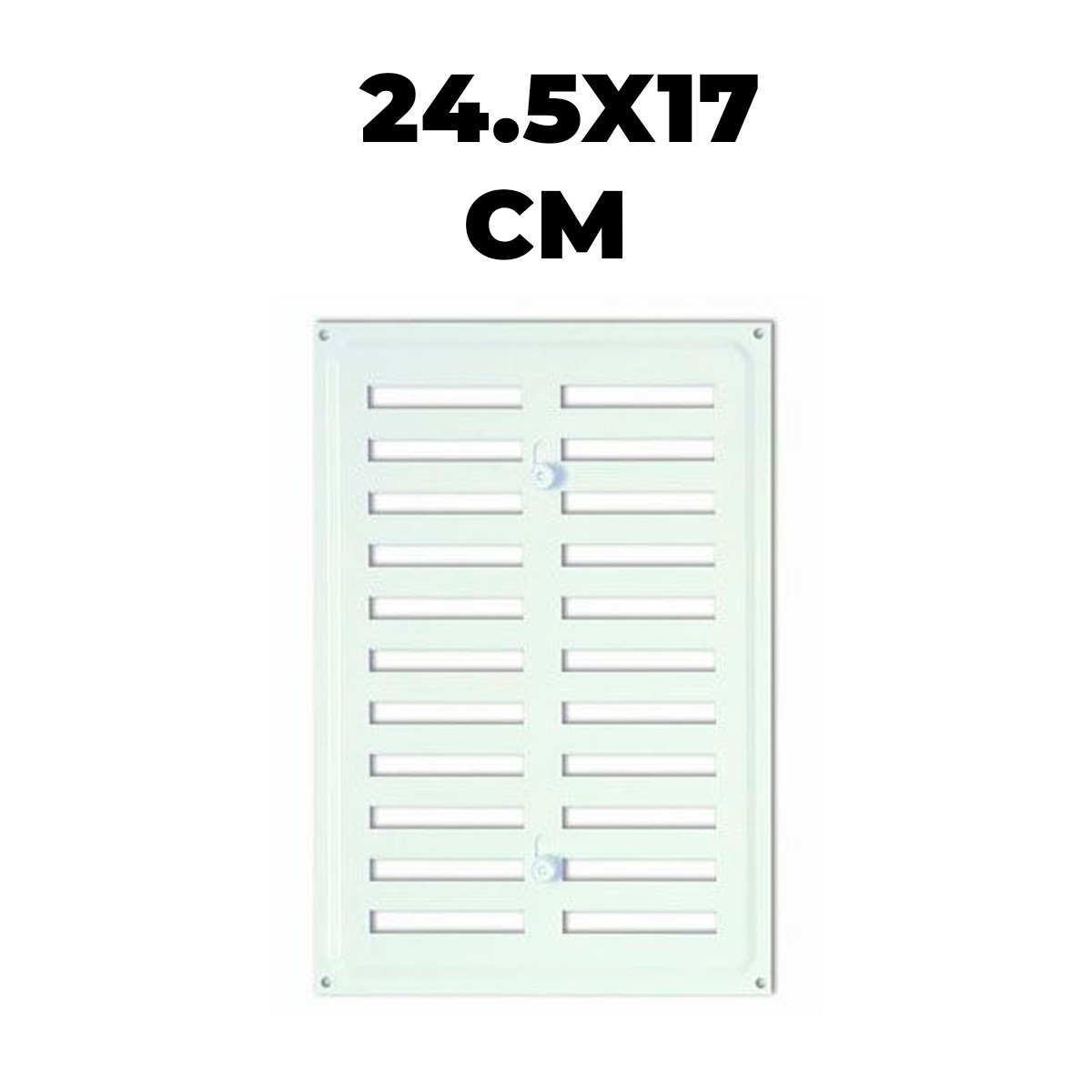 REJILLA ALUM.C/PERSIANA REGULABLE .9 5/8X6 5/8" (24.5X17CM) ACAB.LACADO BLCO, 0.8MM/ESPESOR