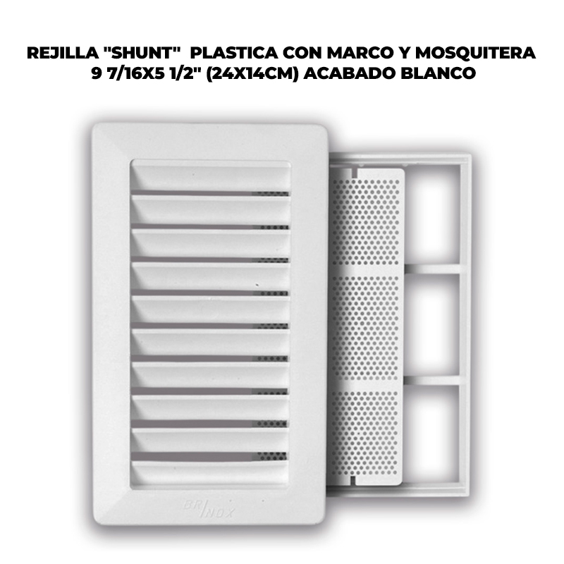 REJILLA "SHUNT" PLASTICA CON MARCO Y MOSQUITERA 9 7/16X5 1/2" (24X14CM) ACABADO BLANCO