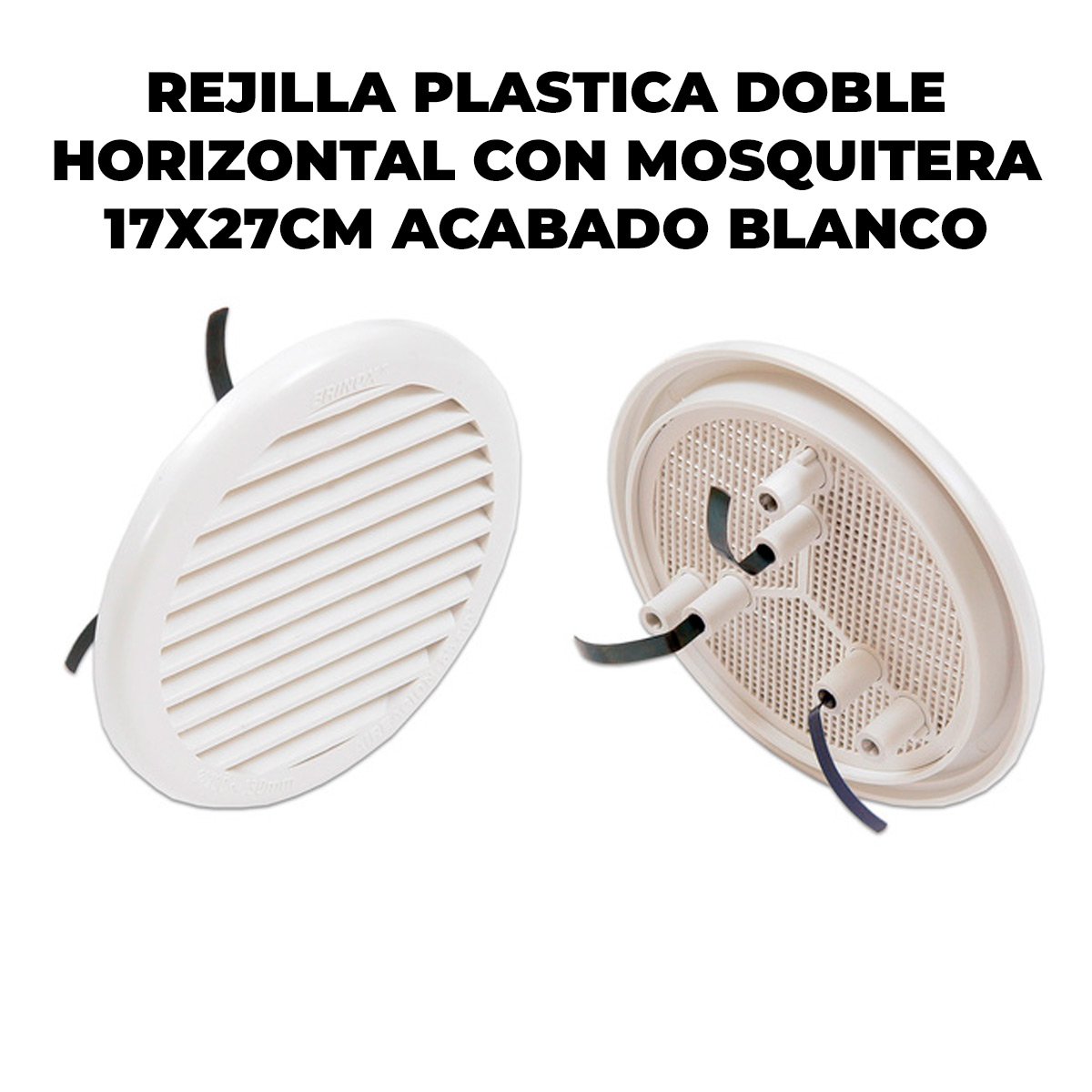 REJILLA PLASTICA DOBLE HORIZONTAL CON MOSQUITERA 6 5/8X10 5/8" (17X27CM) ACABADO BLANCO